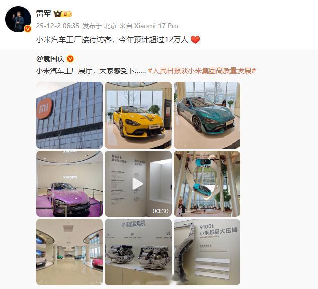 【今年小米汽车工厂访客预计超12万人雷军透露小米汽车工厂接待访客人数】小米创办人,董事长兼CEO发文称:小米汽车工厂接待访客,今年预计超过12万人