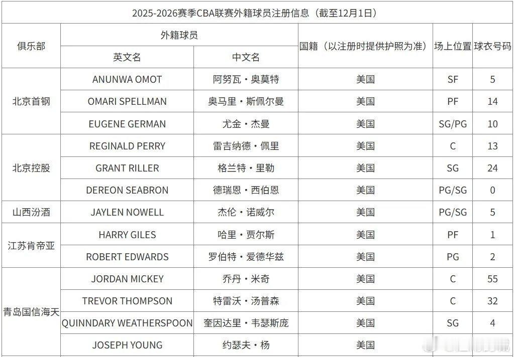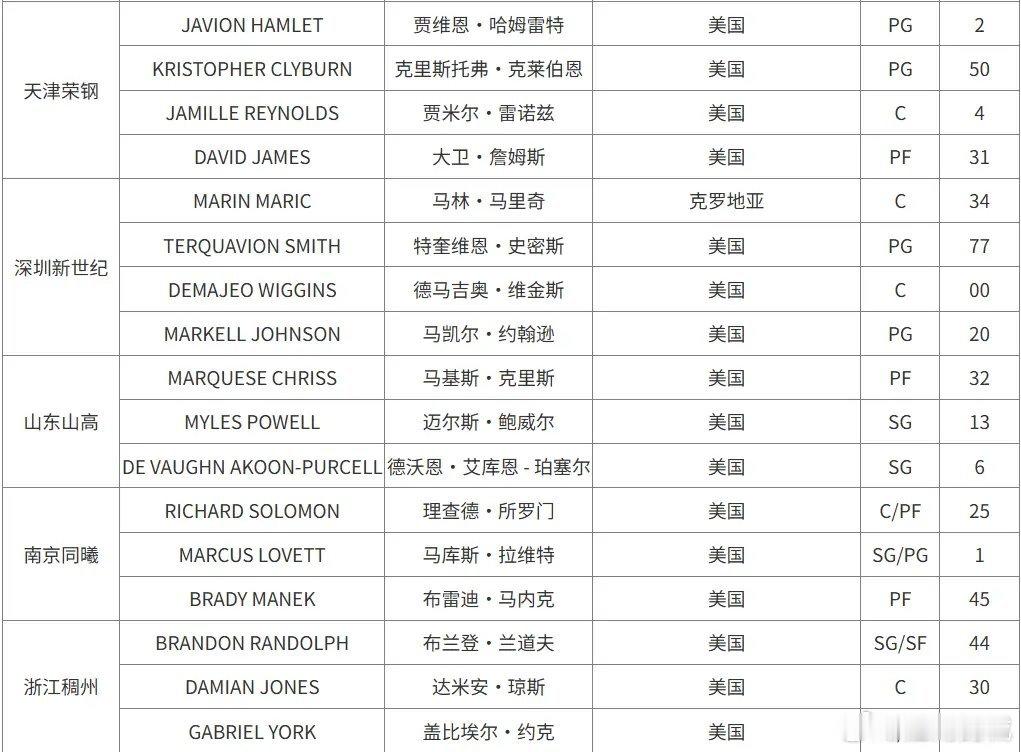 CBA更新外援注册信息:辽宁四外援注册,上海&新疆三外注册。cbacba30年
