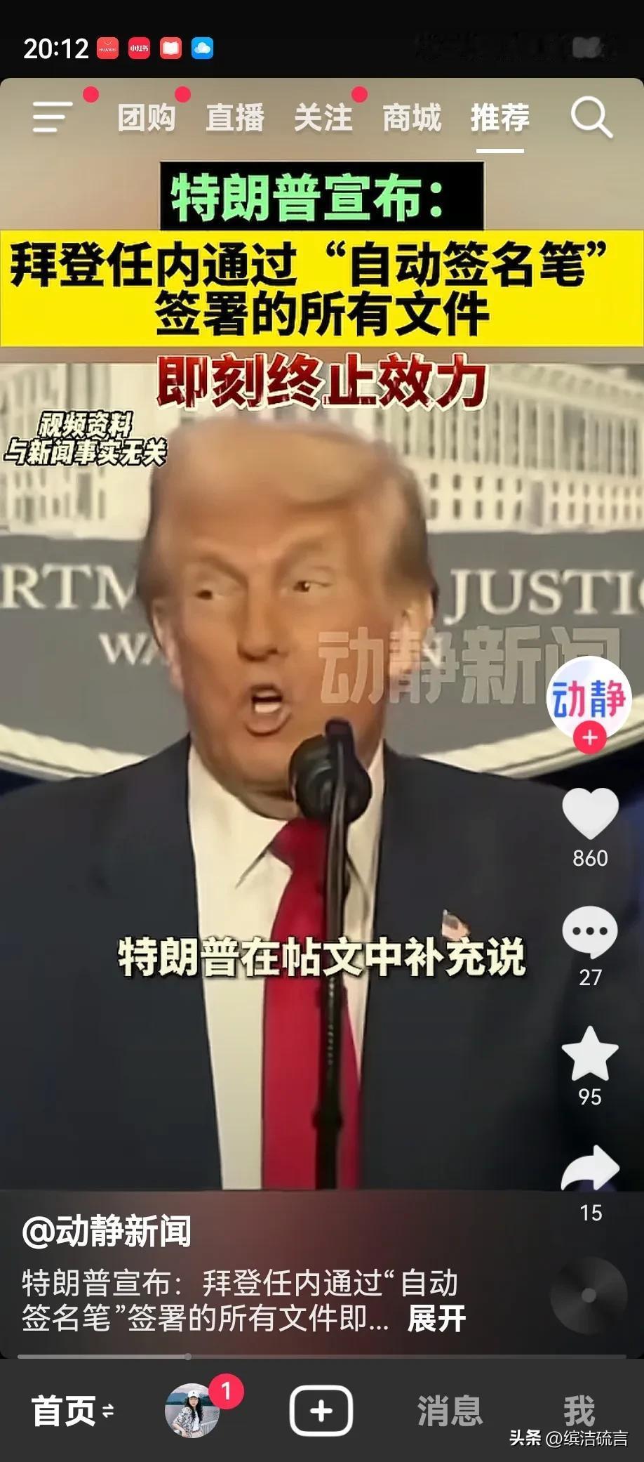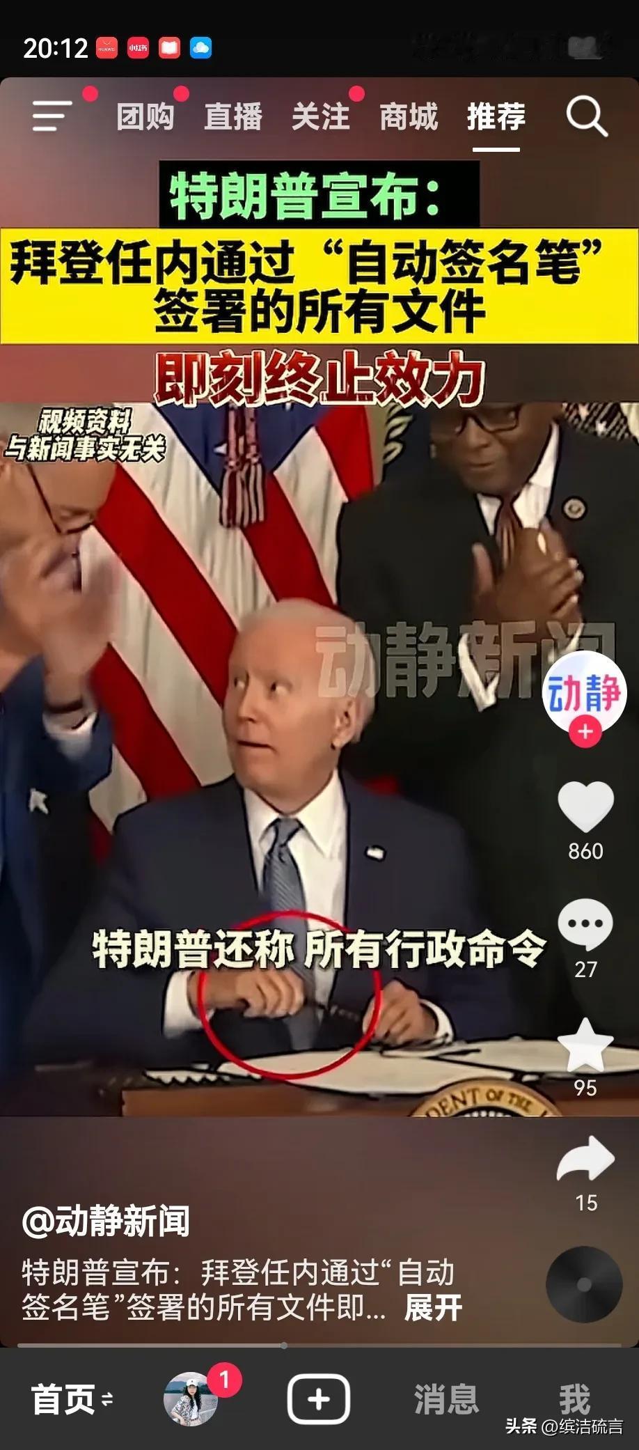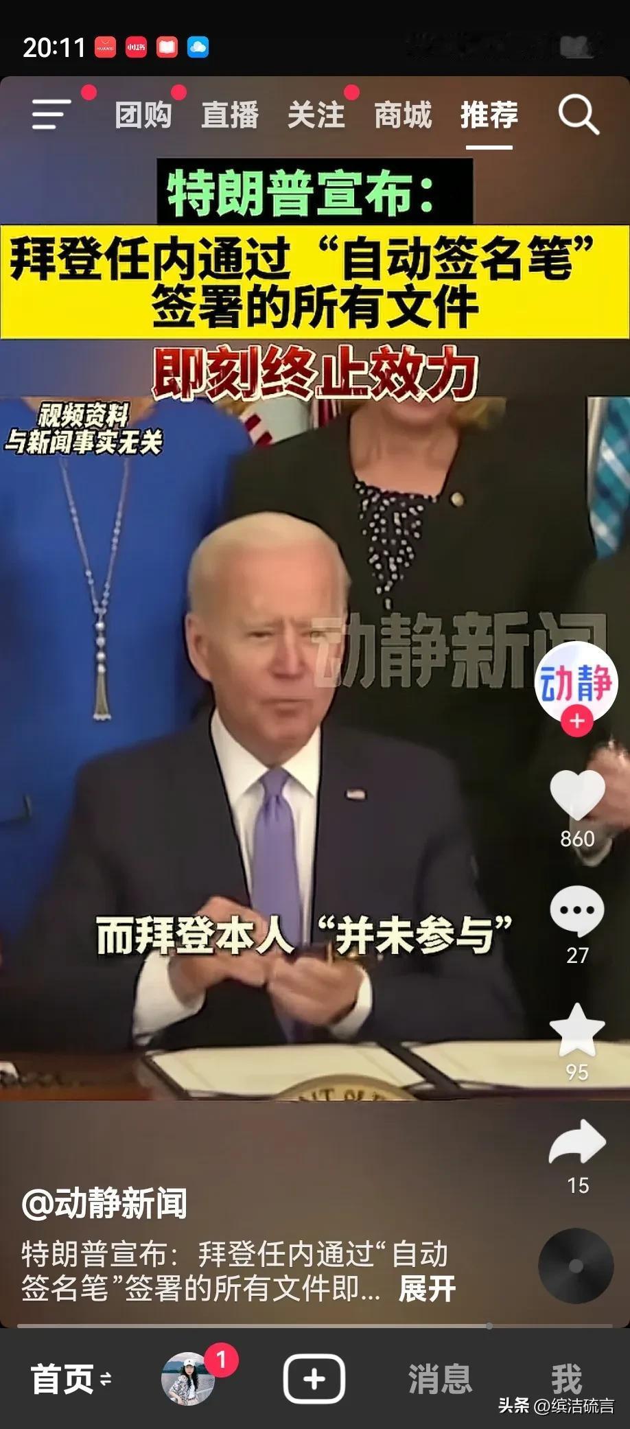 特朗普又怼拜登,瞌睡登退休都没有好日子过,特朗普太离谱了! 特朗普最近发表了对拜登执政文件的看法,拜登在位使用“自动签名”文件全部作废。 拜登目前还没有进行回应,估计回应也解决不了问题,毕竟现在是特朗普在位,加上拜登和特朗普一直不和,特朗普这样一搞,不知道又有多少企业和国家被牵连。 特朗普要求把拜登在位使用的自动签名文件