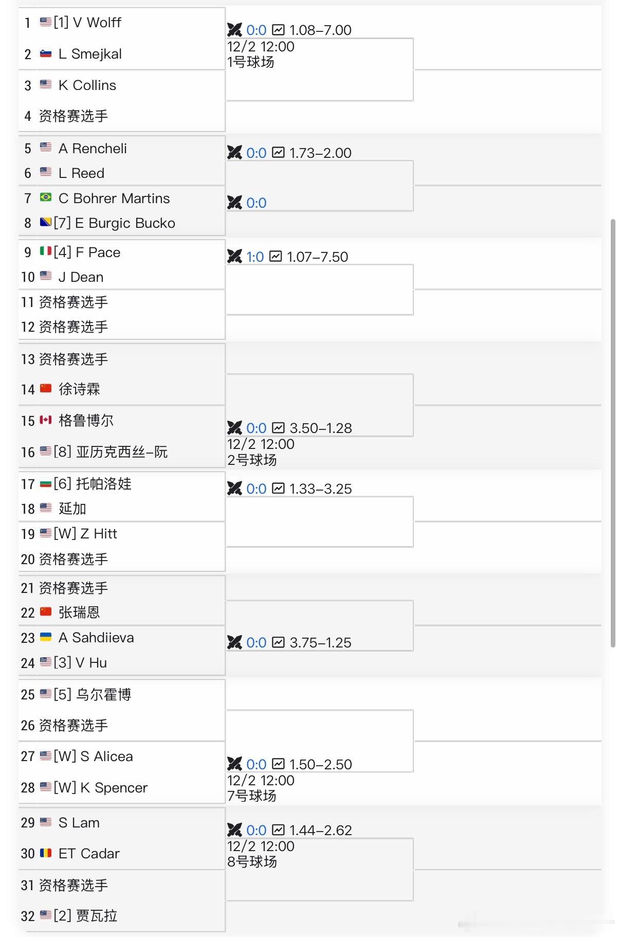 🔵W100迪拜12月2日赛程14:00🇨🇳高馨妤vsQ🇩🇪维尔纳 🎥
