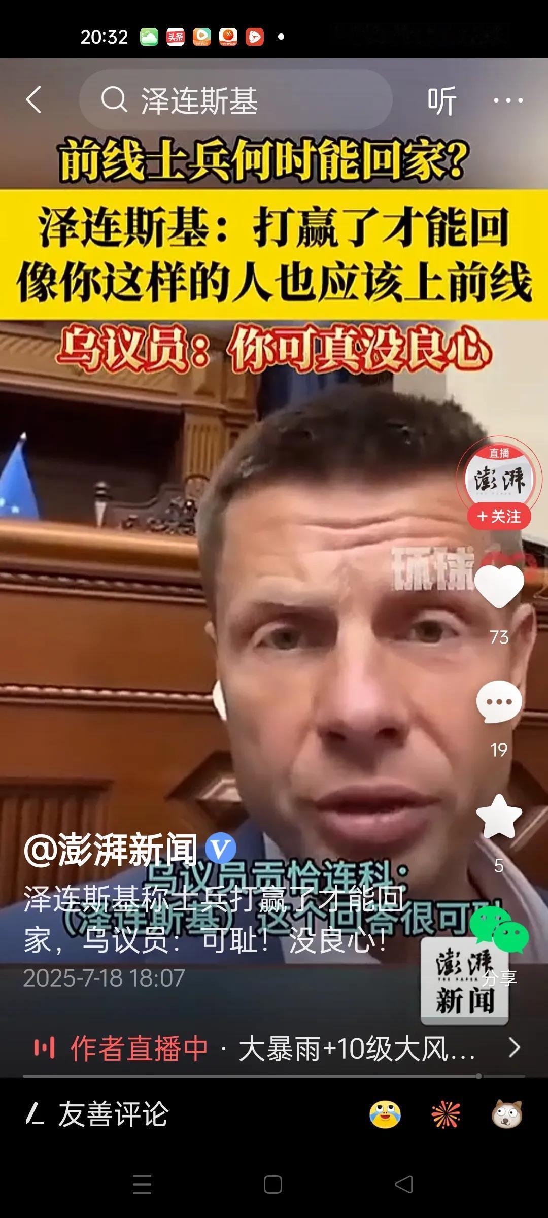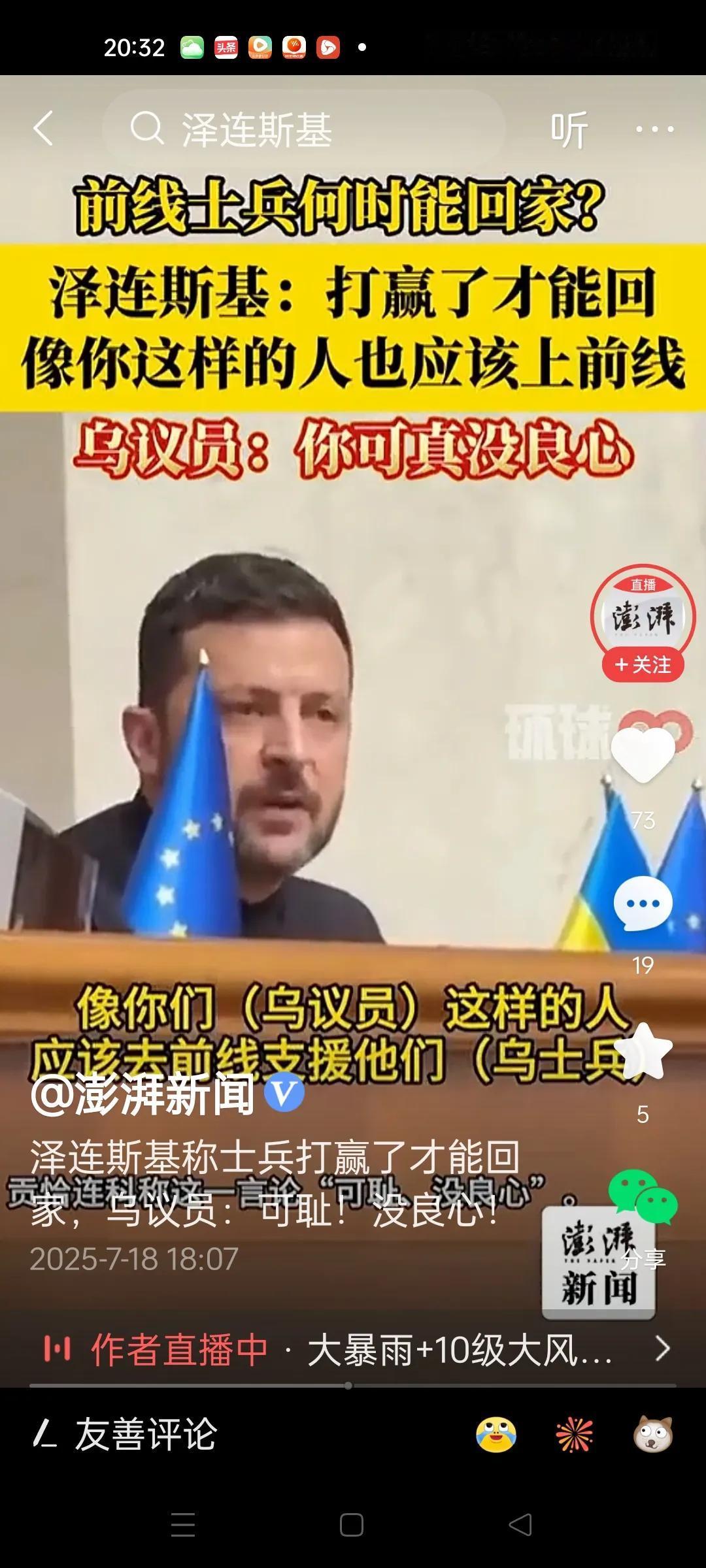 泽林斯基怒怼;你应该上战场…… 亲俄议员;像你这样的人,应该去前线支援他们…… 亲俄议员向乌总统提问;前线的士兵什么时候可以轮换回家。泽林斯基;乌克兰士兵只有打败俄罗斯胜利以后才能回家,像你这样的的议员也应该去前线支援他们……说的贡恰连科无言以对,直呼泽林斯基没良心…… 通过俄乌战争,乌克兰会最大程度的消耗俄罗斯人,把大量的俄族人送入战场,以达到优化组合达成去俄罗斯化,这可能不是什么秘密了…… 据我所知;乌克兰人是志愿上战场,同仇敌忾!俄族人反对,那么只有抓抬手铐上战场了……