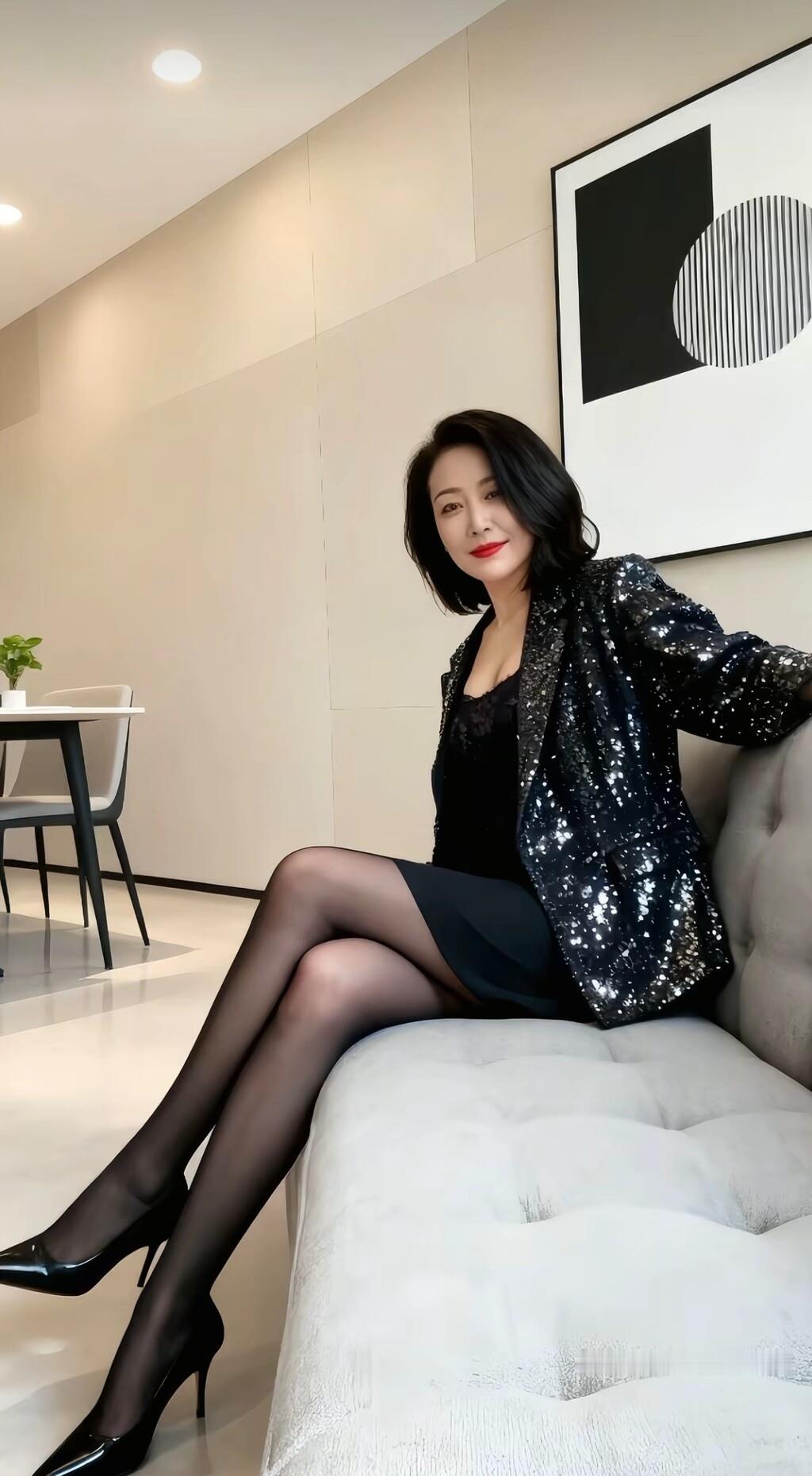 元气少女自拍,黑色毛衣搭配米色丝袜和裸色高跟鞋,清新自然!💕