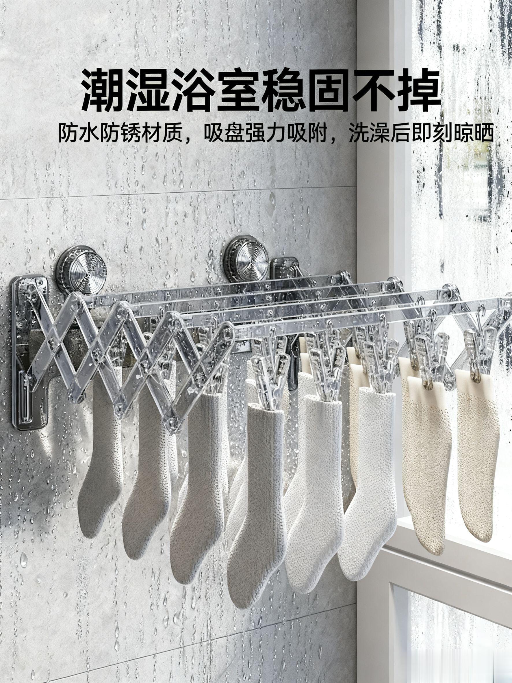 想要在阳台经常晒袜子,用这个吸盘折叠袜子夹,吸在阳台晾晒袜子,内衣啥的都很方便,贴在浴室也可以!