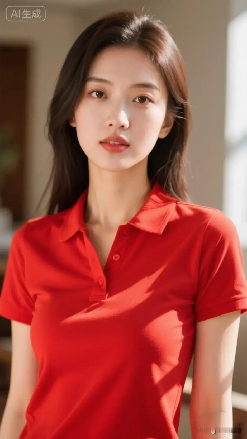 女人最美是气质还是最美的是善良?正红色polo衫裹着日光的热烈,发丝轻垂时,连光影都偏爱这抹利落的清甜