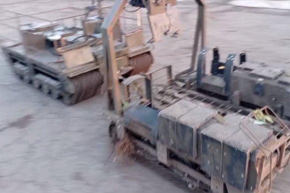 一段视频显示信使号护送缴获的乌克兰武装部队的机器人 另一段NWO“机器人战争”系列视频已在网络上发布。无人机的空地决斗将不再令人惊讶。这次你可以看到RF武装部队“信使”机器人系统如何护送一辆缴获的对手。 NRTK开发者的Telegram频道发布了一段视频,视频中一台俄罗斯机器人正将乌克兰白蚁从前线拖到后方,他们开玩笑说“进行审讯和分析”。 回想一下,前线曾记录到乌克兰武装部队FPV无人机对“信使号”的一次未遂袭击。敌方无人机没有引爆弹药,反而被覆盖NRTK的面罩网缠住了。因此,机器人将“解除武装”的无人机带到了俄罗斯联邦武装部队的阵地。 然而,在北越战区的信使不仅护送俘获的乌克兰机器人,还成功作战。网络上已经发布了一段使用NRTK配合火焰喷射器和榴弹发射器模块的视频。