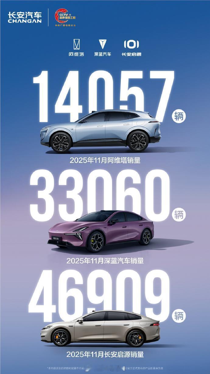 长安汽车11月销量28.3万辆 新能源销量 12.5 万辆,同比增长 23%,连续 3 个月破 10万辆,海外销量 5.5 万辆,同比增长 47%;总销量 28.3 万辆,同比增长 2.3%深蓝汽车全球销量 33060 辆;深蓝汽车11月全球销量超3万辆 阿维塔销量 14057 辆,同比增长 21.4% 阿维塔11月销量14057辆再创新高