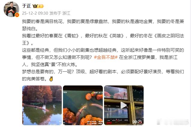 于正说金吾不禁想超越经典 于正说《金吾不禁》在全浙江搜罗美景,也想超越经典《青蛇