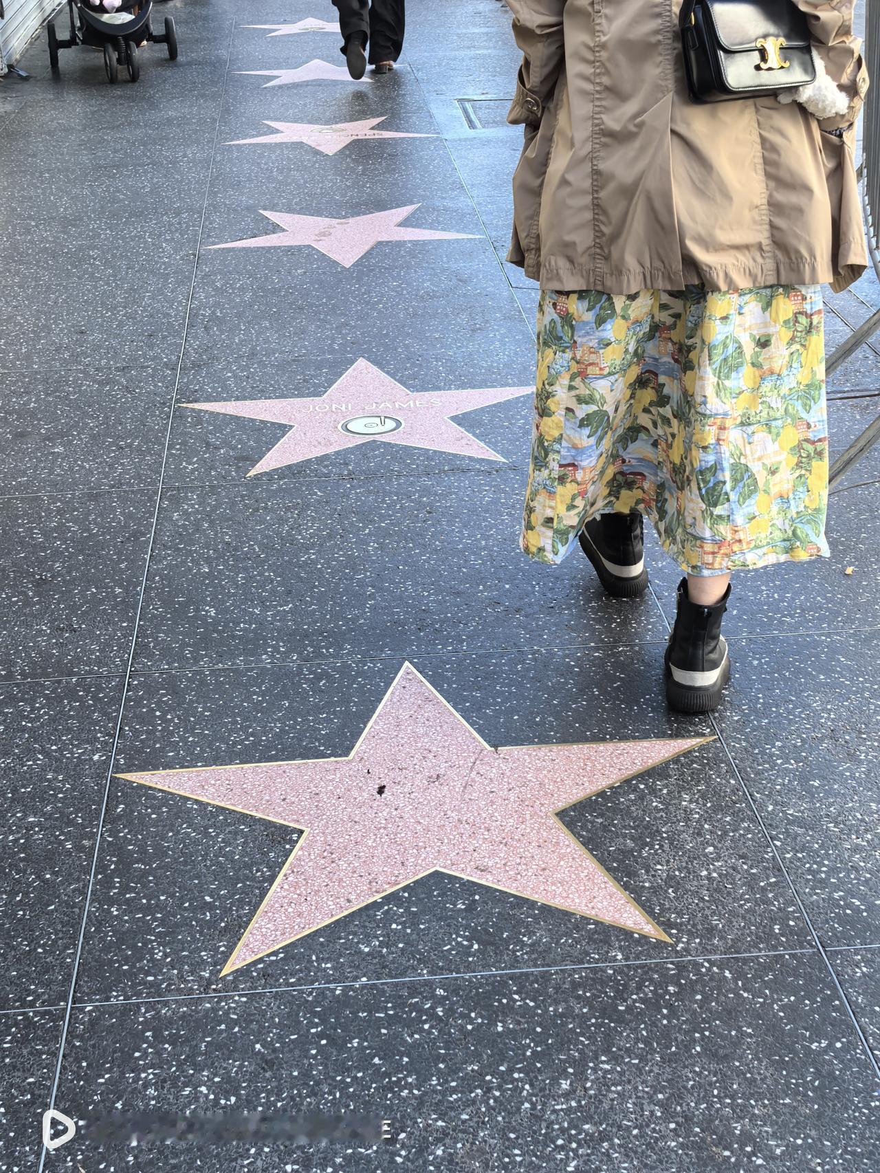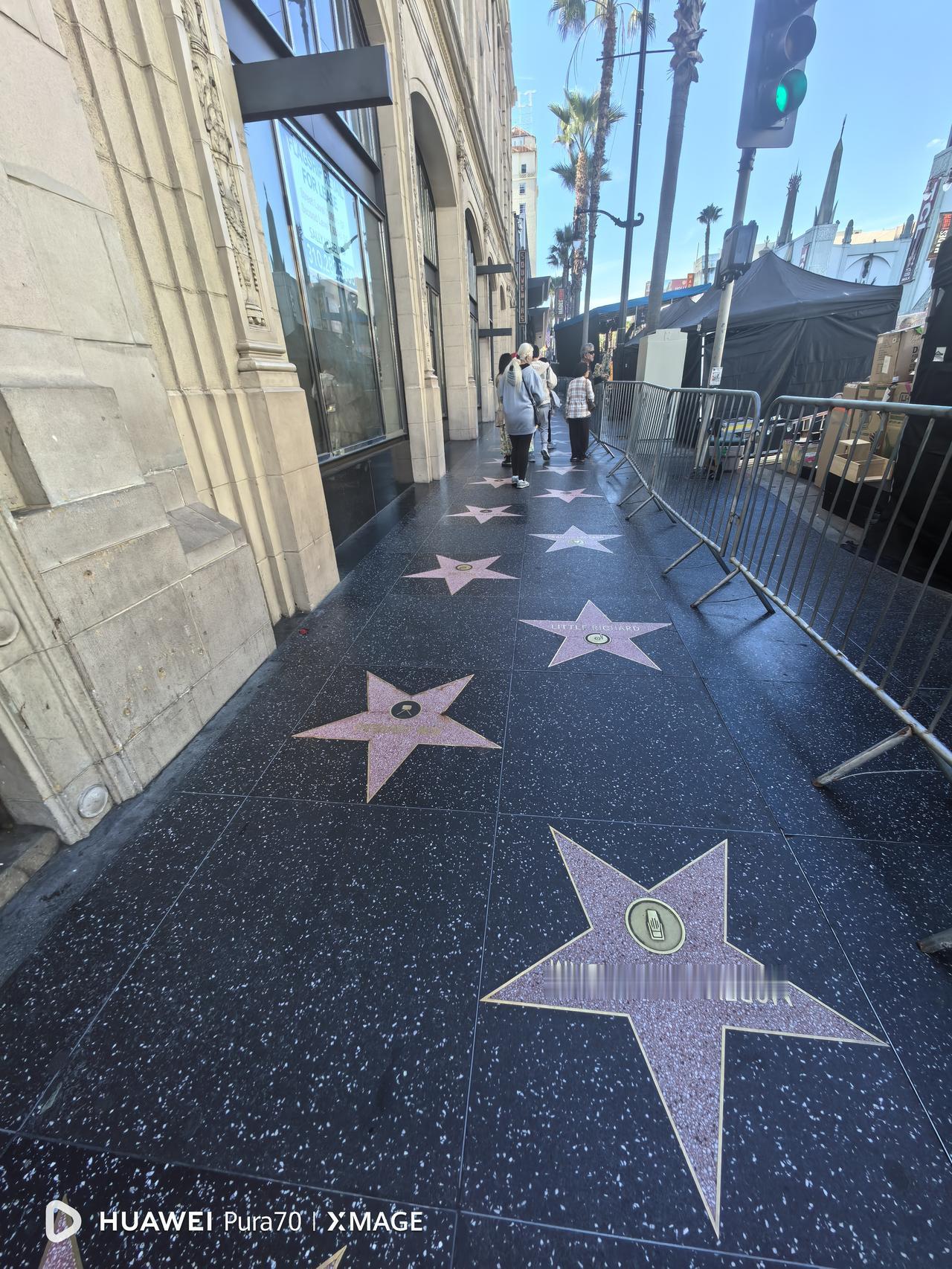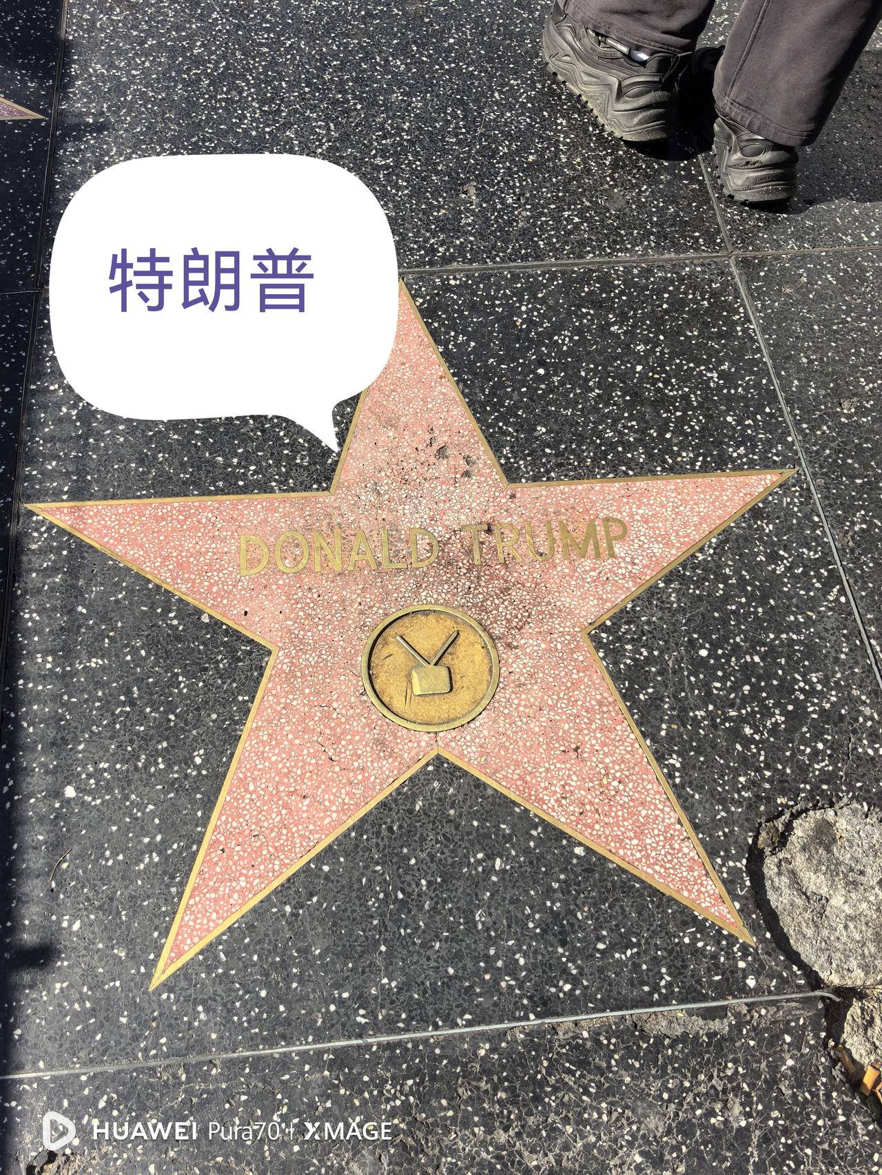 在洛杉矶好莱坞星光大道漫步 好莱坞星光大道(Hollywood Walk of Fame)位于美国洛杉矶好莱坞大道(Hollywood Boulevard)和藤街(Vine Street)一带,是世界上最著名的娱乐文化地标之一。大道两侧的人行道上镶嵌着超过2700颗粉红色五角星,上面刻有对娱乐产业做出杰出贡献的人士或团体的名字。 星光大道的荣誉涵盖电影、电视、音乐、广播、现场戏剧/表演五大领域。从好莱坞黄金时代的传奇人物,到当代全球知名的明星,都能在这里找到他们的名字。 星光大道不仅是影迷“打卡”的圣地,也是一条浓缩好莱坞百年娱乐史的露天博物馆。附近还聚集了中国大剧院(原格劳曼中国剧院)、杜比剧院等标志性建筑,每年奥斯卡颁奖季更是这里最热闹的时候。 我们漫步在星光大道,寻找那些熟悉的明星。找到了李小龙、陈龙,甚至还有特朗普,倒是有些意外。 在好莱坞星光大道上,已有多位中国及华裔名人留下名字,代表华人在世界娱乐史中的重要位置。最具代表性的是李小龙(Bruce Lee)、成龙(Jackie Chan)、吴宇森(John Woo)、刘玉玲(Lucy Liu)、黄柳霜(Anna May Wong)等,这些名字共同见证了中国文化在国际舞台上的长期努力与突破。