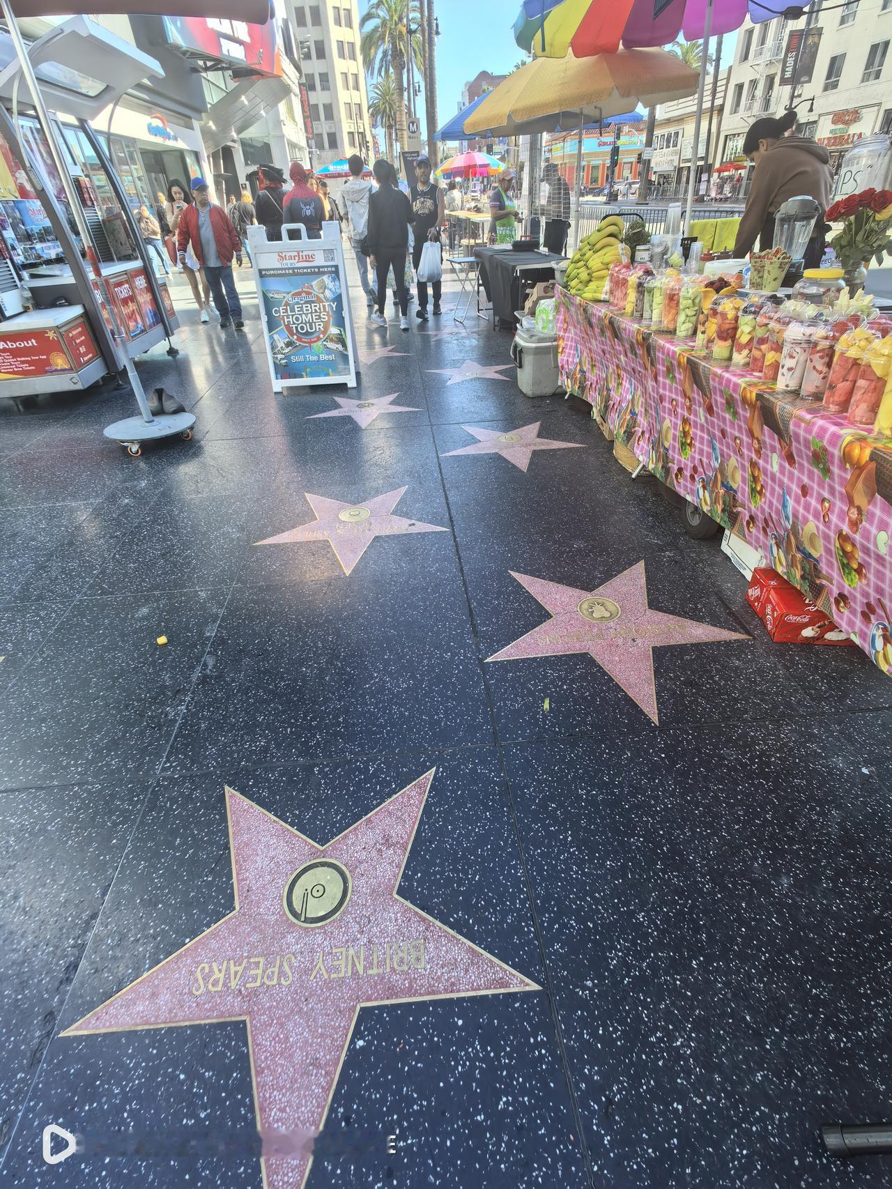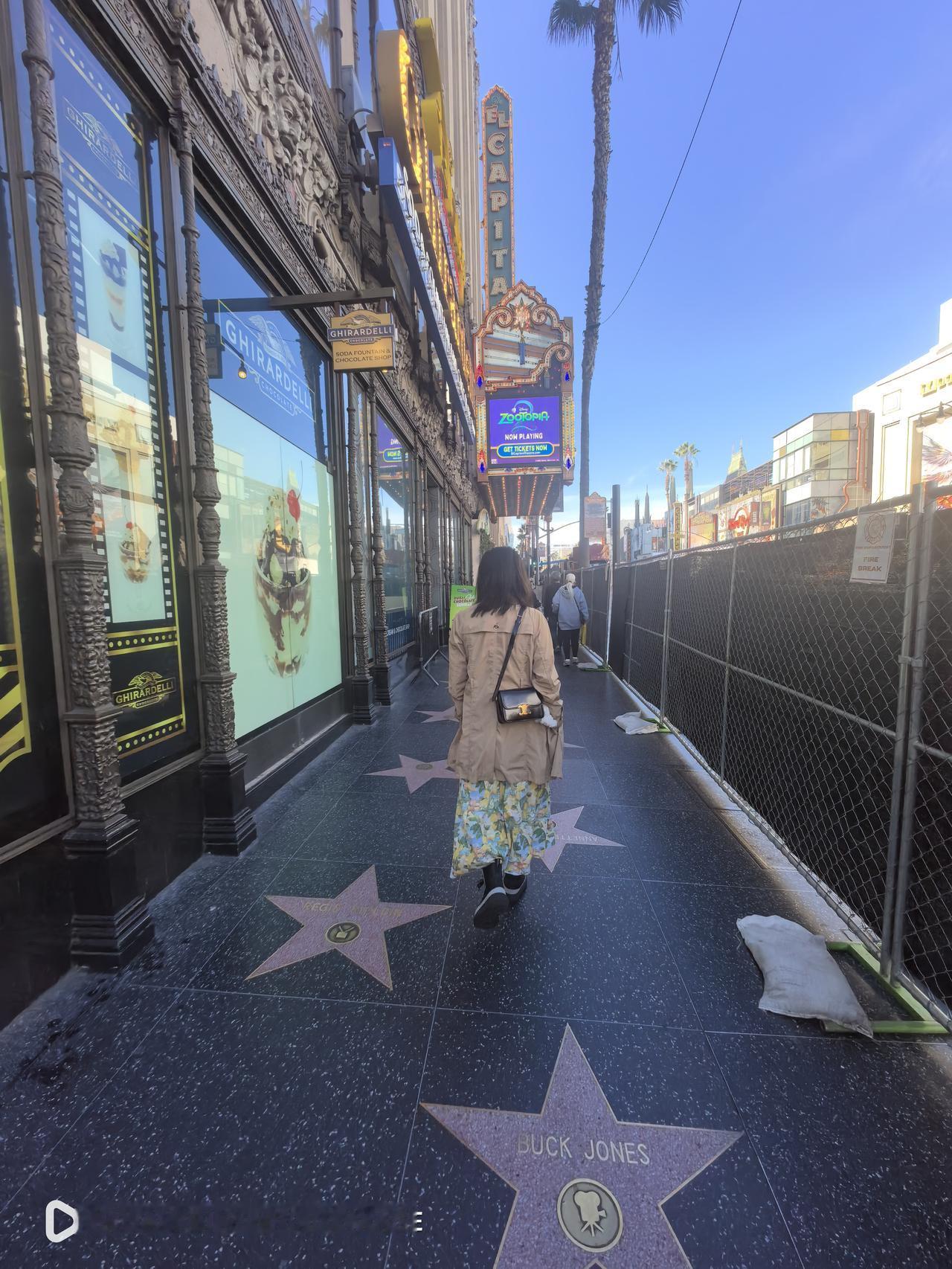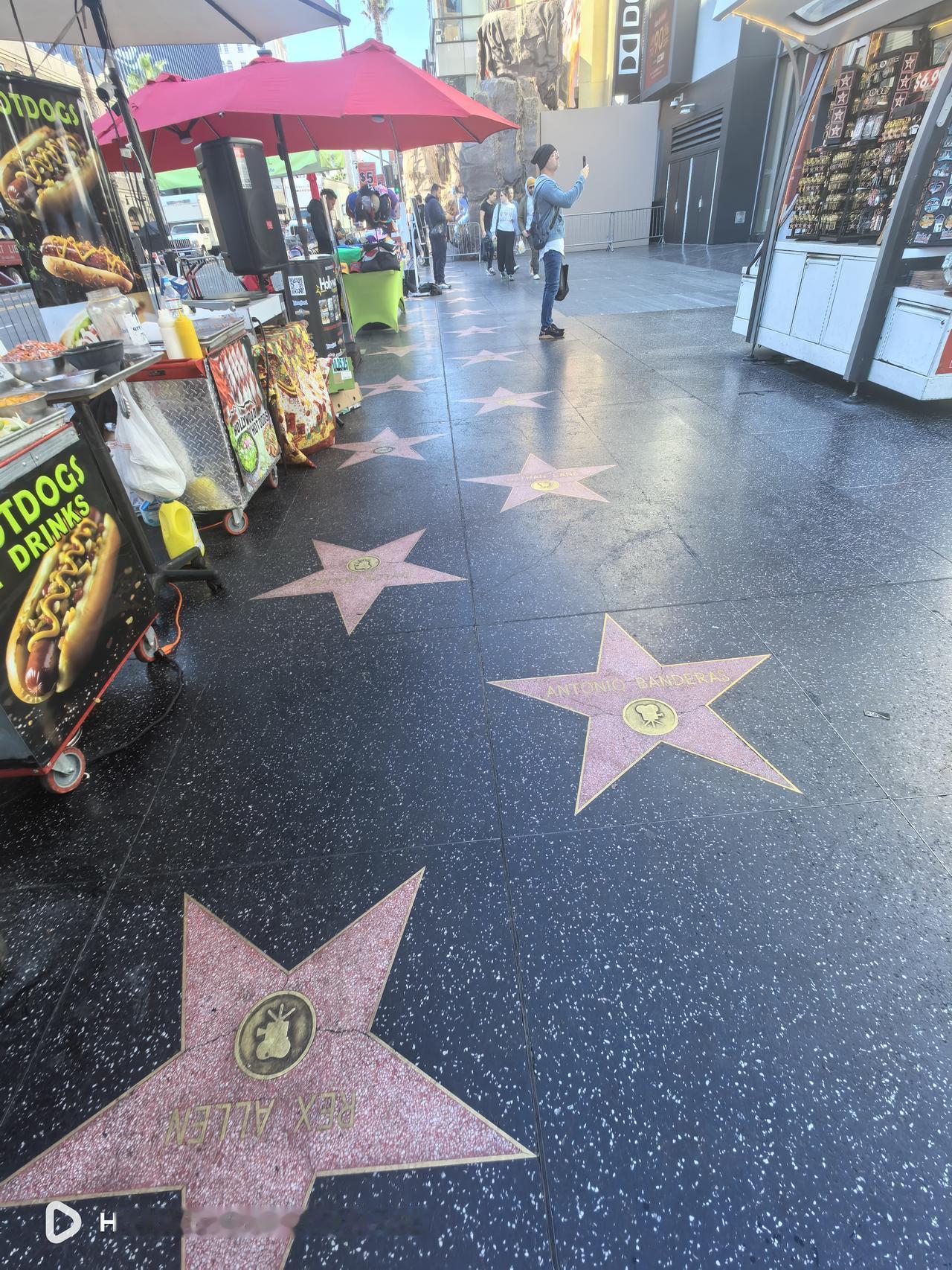 在洛杉矶好莱坞星光大道漫步 好莱坞星光大道(Hollywood Walk of Fame)位于美国洛杉矶好莱坞大道(Hollywood Boulevard)和藤街(Vine Street)一带,是世界上最著名的娱乐文化地标之一。大道两侧的人行道上镶嵌着超过2700颗粉红色五角星,上面刻有对娱乐产业做出杰出贡献的人士或团体的名字。 星光大道的荣誉涵盖电影、电视、音乐、广播、现场戏剧/表演五大领域。从好莱坞黄金时代的传奇人物,到当代全球知名的明星,都能在这里找到他们的名字。 星光大道不仅是影迷“打卡”的圣地,也是一条浓缩好莱坞百年娱乐史的露天博物馆。附近还聚集了中国大剧院(原格劳曼中国剧院)、杜比剧院等标志性建筑,每年奥斯卡颁奖季更是这里最热闹的时候。 我们漫步在星光大道,寻找那些熟悉的明星。找到了李小龙、陈龙,甚至还有特朗普,倒是有些意外。 在好莱坞星光大道上,已有多位中国及华裔名人留下名字,代表华人在世界娱乐史中的重要位置。最具代表性的是李小龙(Bruce Lee)、成龙(Jackie Chan)、吴宇森(John Woo)、刘玉玲(Lucy Liu)、黄柳霜(Anna May Wong)等,这些名字共同见证了中国文化在国际舞台上的长期努力与突破。