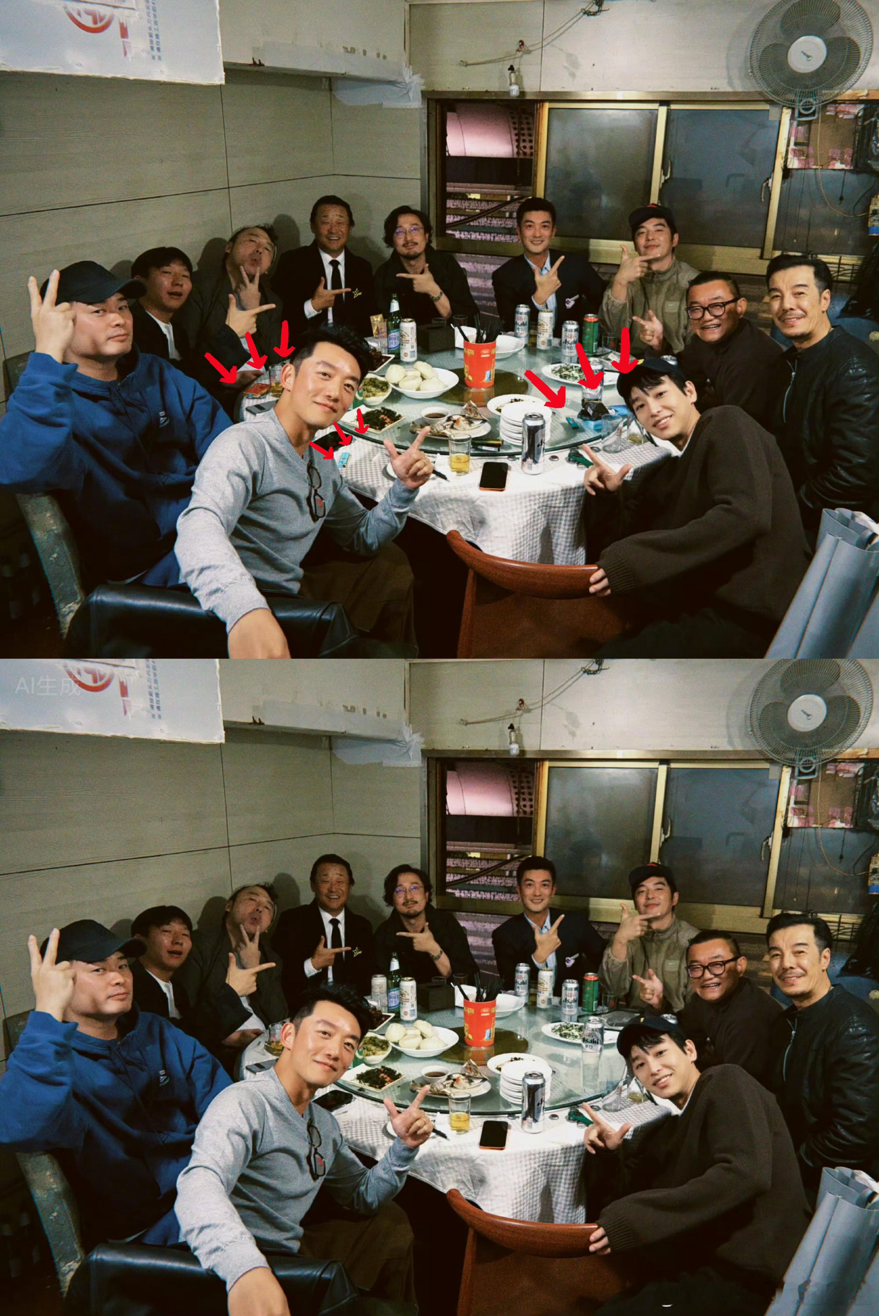 郑恺上戏合影 AI生成 给郑恺的微博整成大家一起来找茬了,吓得郑恺编辑了两次,主要就是用ai处理了桌子上的🚬公众人物有po图p掉🚬的觉悟还是挺好的!!!毕竟上网的未成年人还挺多的