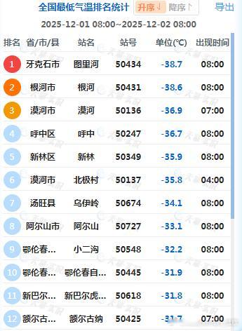 【气温创新低】今晨在冷空气影响下,东北华北多地降温,并创出下半年气温新低。内蒙古图里河零下38.7℃,为下半年以来,国家气象站的最低气温。漠河零下36.9℃为黑龙江下半年以来最低。呼和浩特老国家站零下20.2℃,为下半年首个跌破零下20℃的首府/省会/直辖市。今晨省会直辖市创新低的还有:长春零下17.1℃、沈阳零下12.3℃、北京零下5.2℃、天津西青零下5.1℃、石家庄零下2.8℃。明晨东北华北黄淮还有很多城市气温会创新低,哈尔滨和长春可能是下半年首次跌破零下20℃,太原可能是下半年首次跌破零下10℃、郑州将是首次破零。