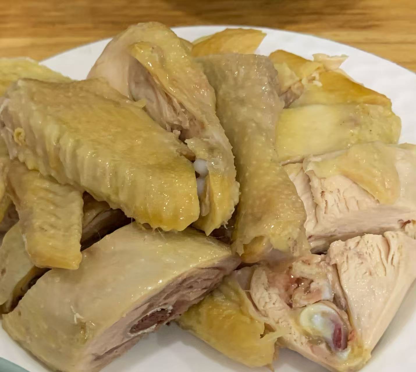 2️⃣.白斩鸡,鸡肉保持着鲜亮外形,吃起来鸡皮底下带Q弹皮冻,肉鲜。