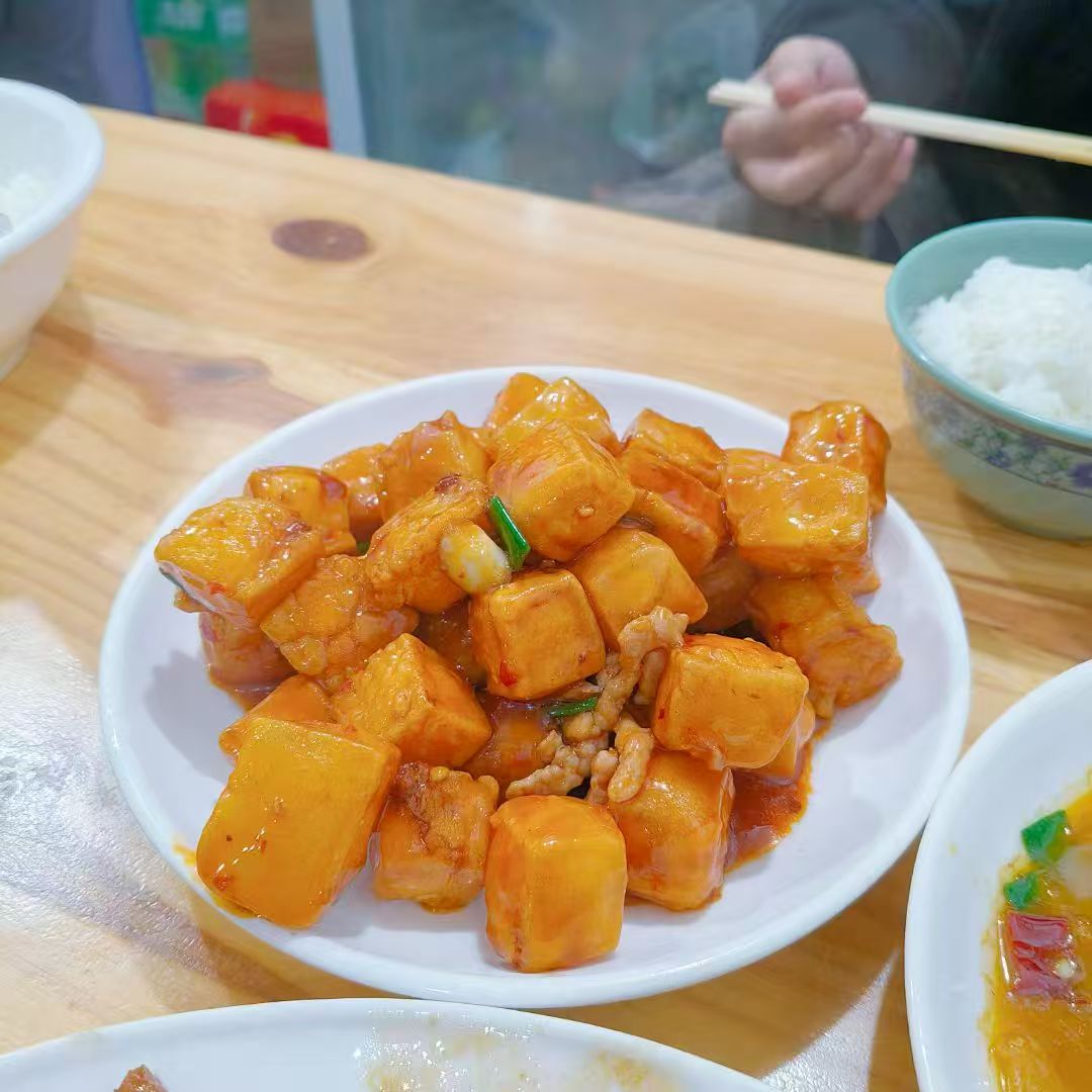 4️⃣.家常豆腐,要趁热吃,外壳脆脆的,里面嫩到像布丁,里面还有笋片。