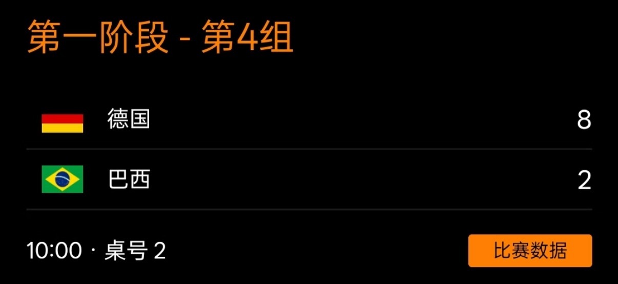混团世界杯,德国8比2巴西!第一盘:邱党/温特3-0 罗曼斯基/斯特拉斯伯格【11-6,11-3,11-4】第二盘:尼娜·米特兰姆2-1渡边·劳拉【13-11,11-3,9-11】第三盘:帕特里克·弗朗西斯卡2-1费利佩·阿拉多【11-5,11-9,6-11】第四盘:温特/米特兰姆1-0渡边·劳拉/斯特拉斯伯格【11-7】第五盘:弗朗西斯卡/邱党vs阿拉多/罗曼斯基混团世界杯德国8比2巴西