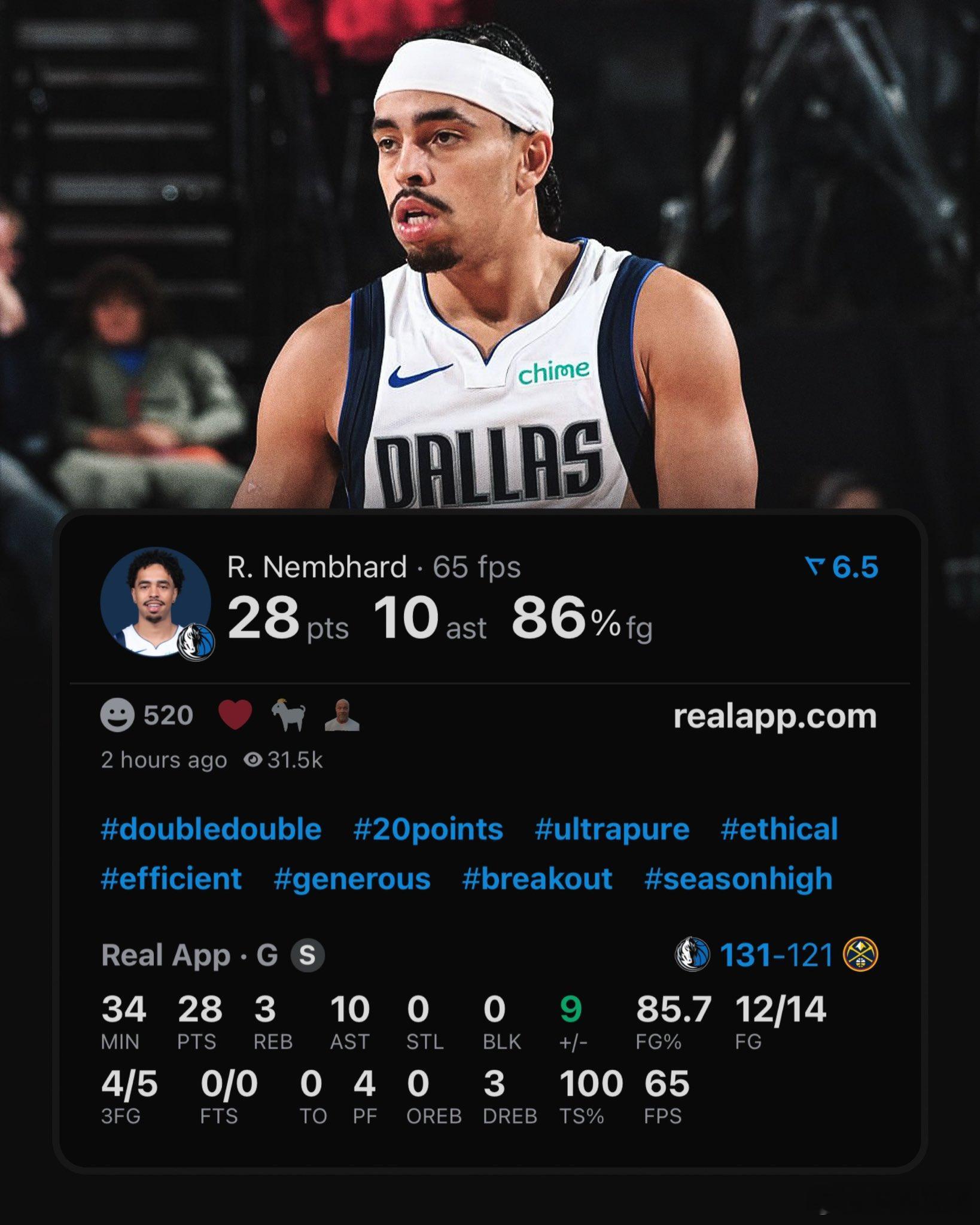 穆雷伤退致使约基奇最后独木难支。独行侠在掘金身上拿到了赛季首次连胜。瑞安-内姆布哈德的表现非常亮眼,14中12,三分球5中4 ,送出28分3篮板10助攻。