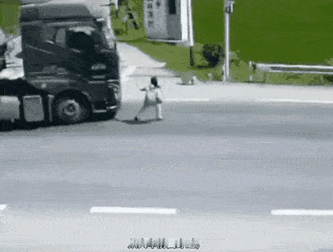 都看见大货车了,还要迎着上,是不是以为大货车能刹住,要让她?真是可惜了。