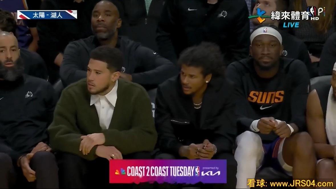 布克回到替补席,已换上便装🫤太阳vs湖人