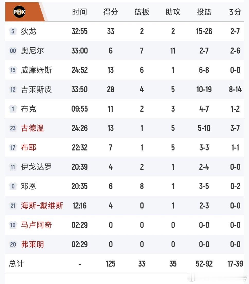 布克伤退!太阳125-108终结湖人7连胜。狄龙布鲁克斯33分,吉莱斯皮28分,东契奇38分11板,詹姆斯垃圾时间10投10分。太阳vs湖人