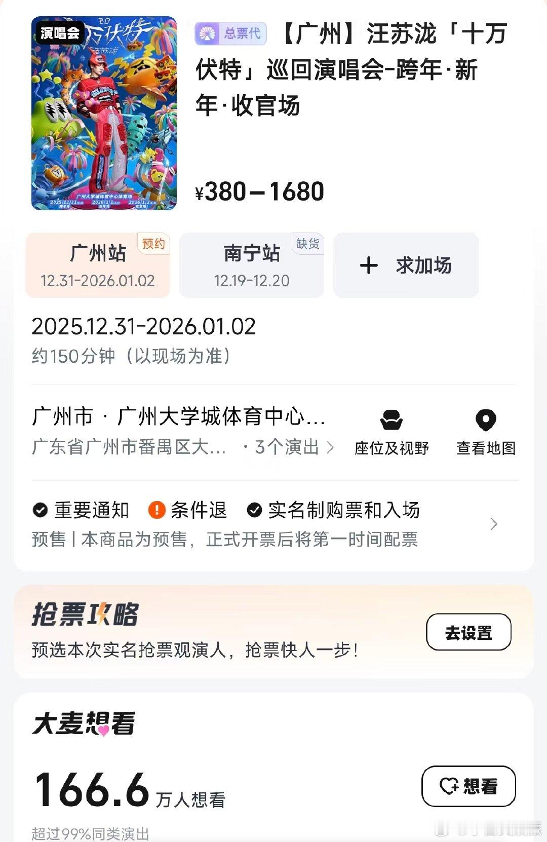 汪苏泷广州跨年演唱会难抢谁还没蹲汪苏泷广州跨年场?166万人已锁死这场收官狂欢