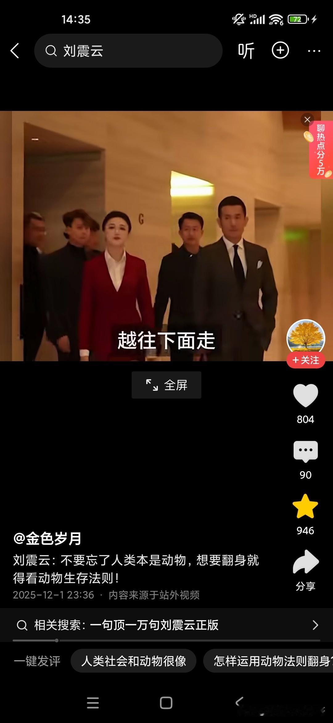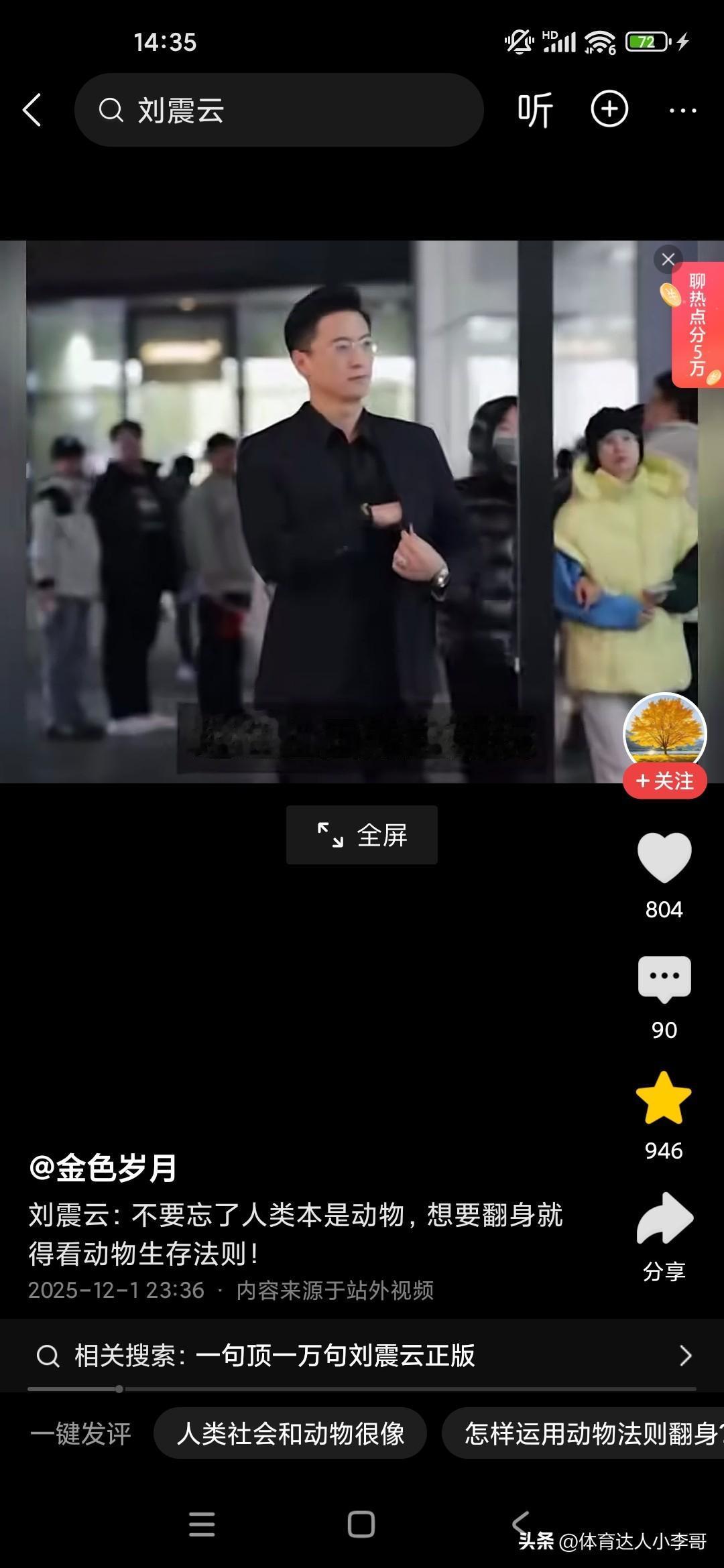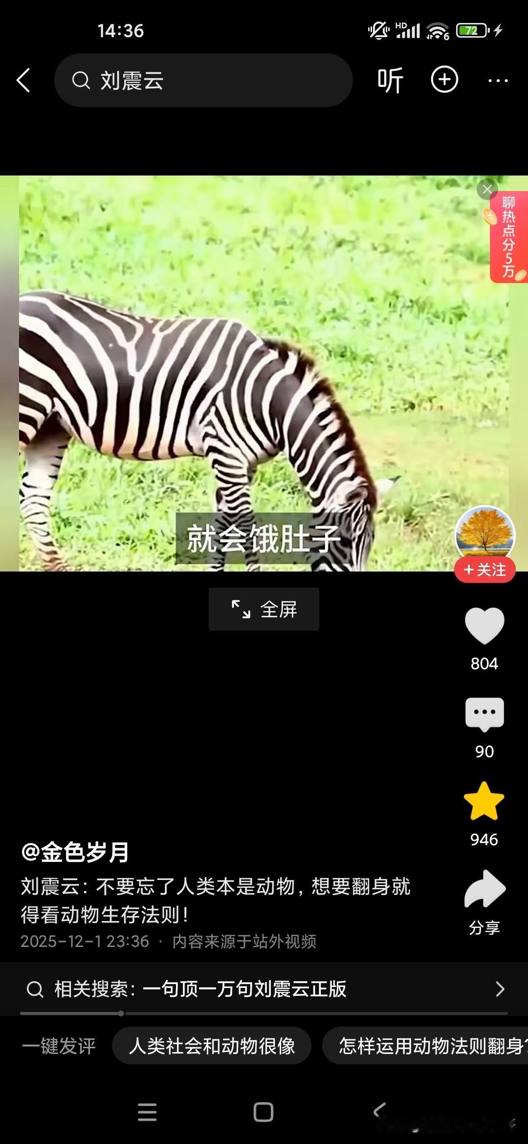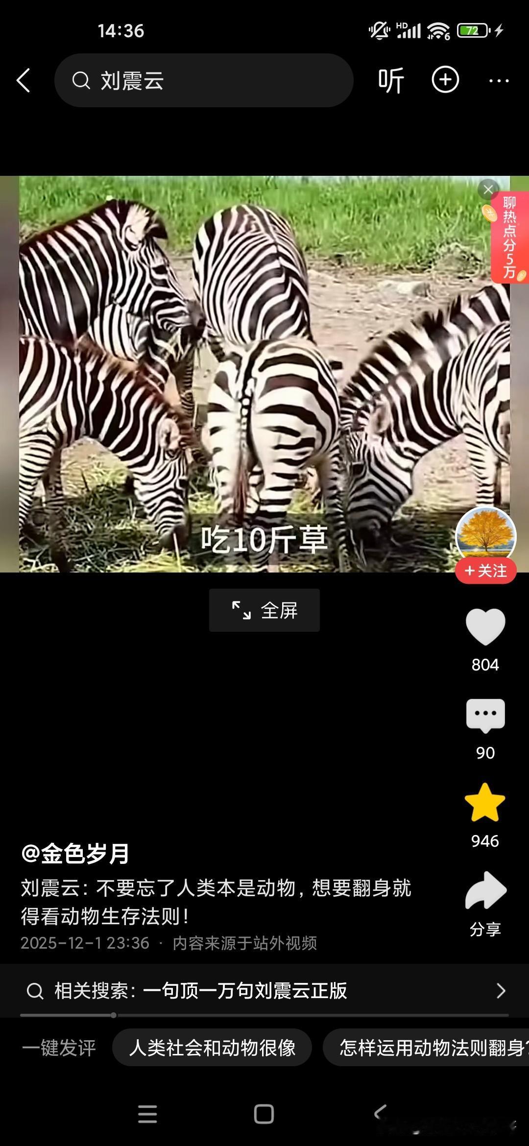 人本来就是动物,想要生存下来,必须要看懂动物世界! 刚听了刘震云老师的演讲,他觉得很多人就像食草动物一样,只能低头去吃草,而且一吃就要吃很久,而且丝毫没有安全性可言,他说富人的话,平时看起来都气定神闲的,但一旦一旦抓住机会,可能就赚了别人一辈子都无法企及的财富,这就是社会生存的法则,因为我们普通老百姓的话,很多人的话是干一天才有一天的活,可能就像斑马一样,吃了十几人十几斤草才能转换成一斤的能量,而富人的话,他有信息差和认知差,所以说他们只要轻轻利用杠杆原理,就可以撬动别人一辈子赚不到的财富,这就是我们穷人和富人的很大的差别,他建议我们人类本来就是动物,所以说我们要看动物的生存法则,这个社会是非常残酷的,你想生存下来就必须像动物一样去拼,站在食物链的顶端才可以!
