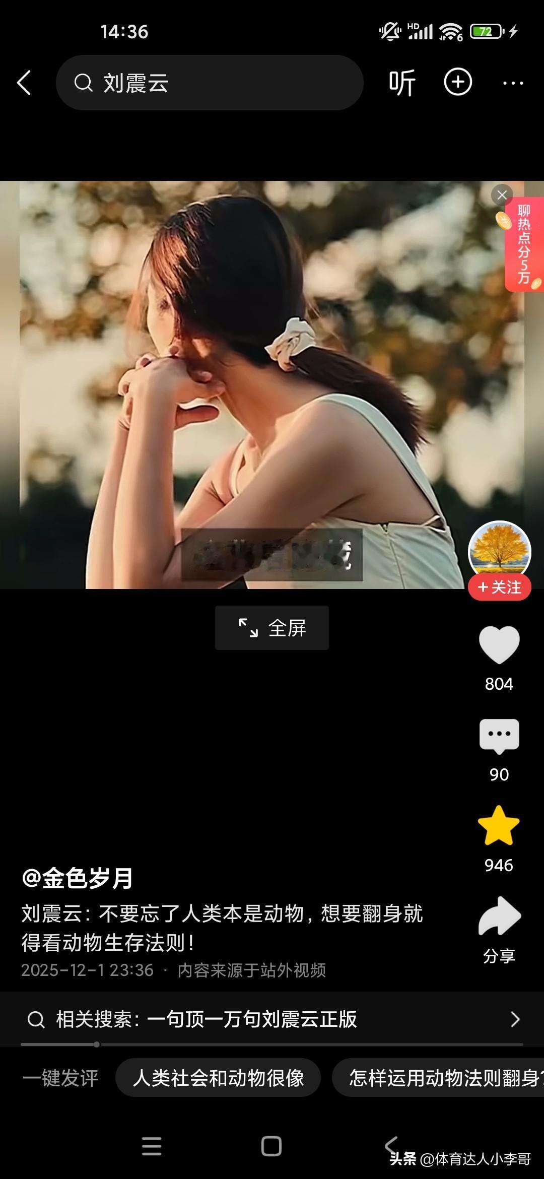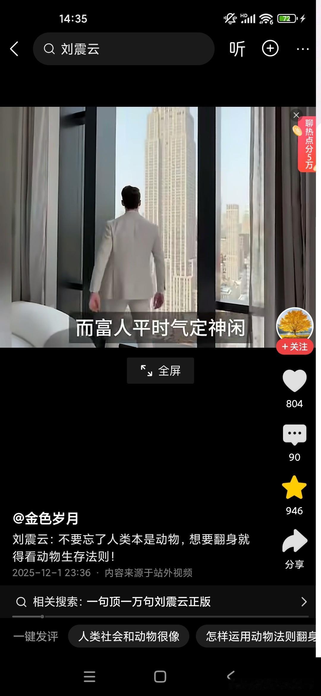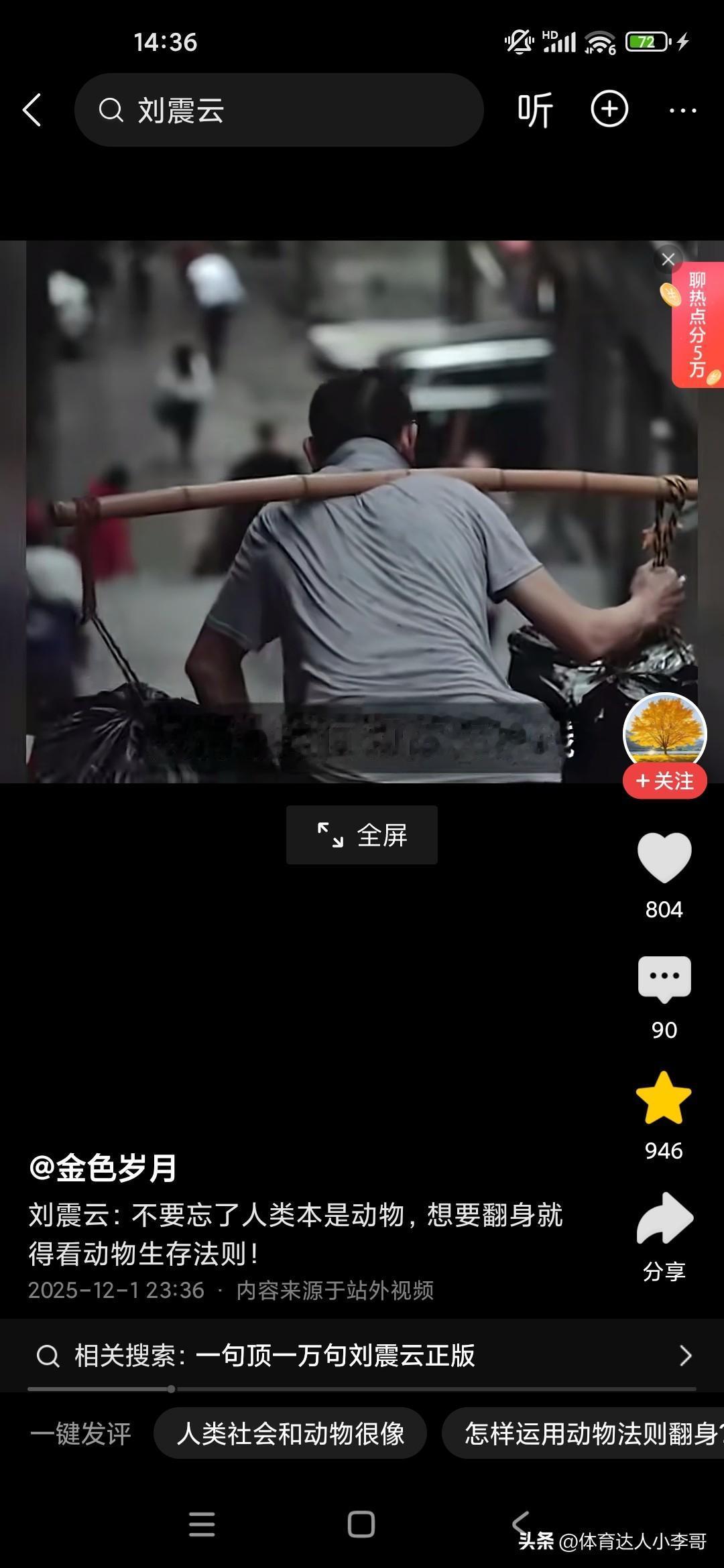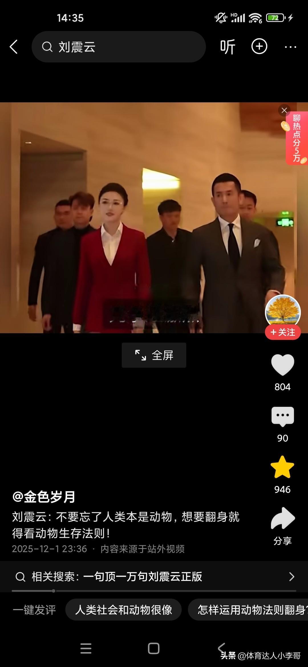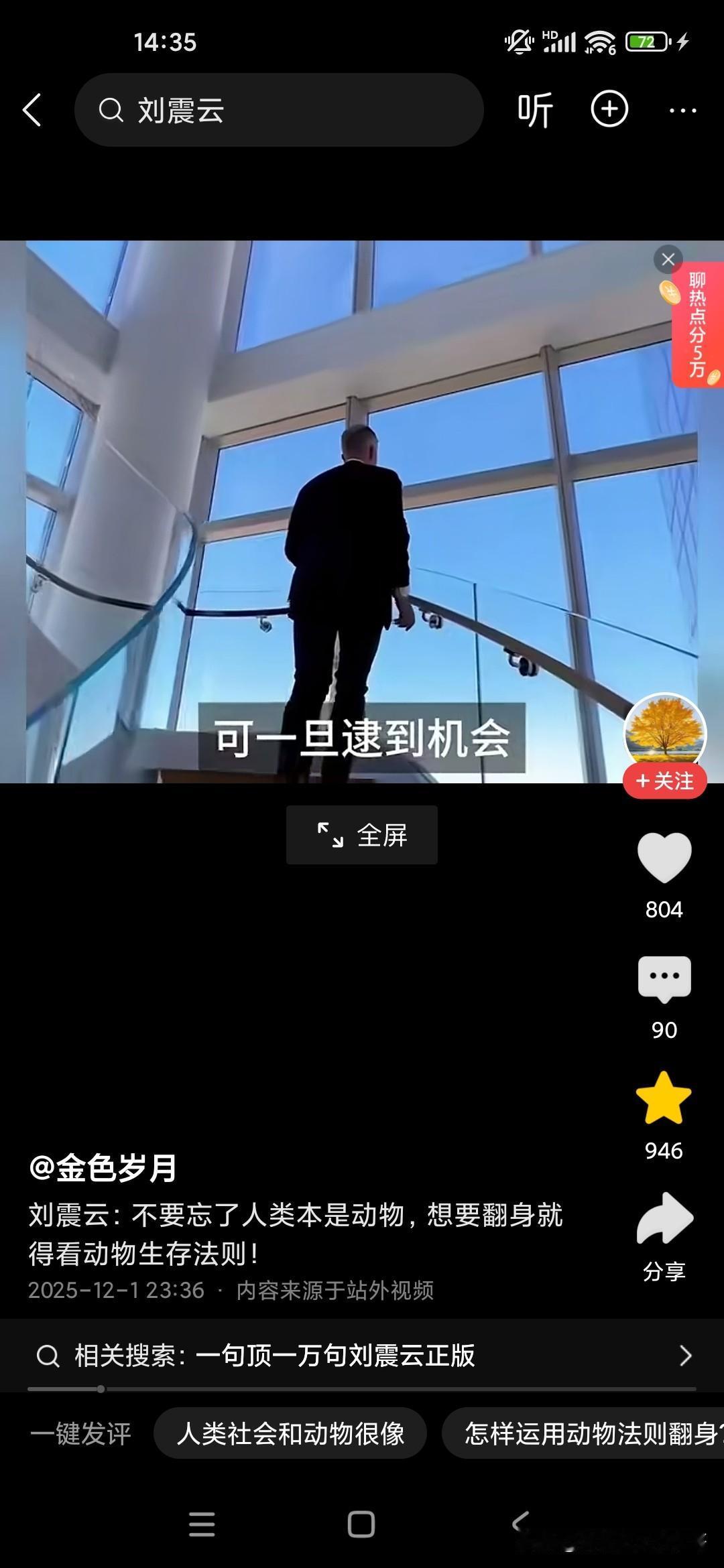 人本来就是动物,想要生存下来,必须要看懂动物世界! 刚听了刘震云老师的演讲,他觉得很多人就像食草动物一样,只能低头去吃草,而且一吃就要吃很久,而且丝毫没有安全性可言,他说富人的话,平时看起来都气定神闲的,但一旦一旦抓住机会,可能就赚了别人一辈子都无法企及的财富,这就是社会生存的法则,因为我们普通老百姓的话,很多人的话是干一天才有一天的活,可能就像斑马一样,吃了十几人十几斤草才能转换成一斤的能量,而富人的话,他有信息差和认知差,所以说他们只要轻轻利用杠杆原理,就可以撬动别人一辈子赚不到的财富,这就是我们穷人和富人的很大的差别,他建议我们人类本来就是动物,所以说我们要看动物的生存法则,这个社会是非常残酷的,你想生存下来就必须像动物一样去拼,站在食物链的顶端才可以!