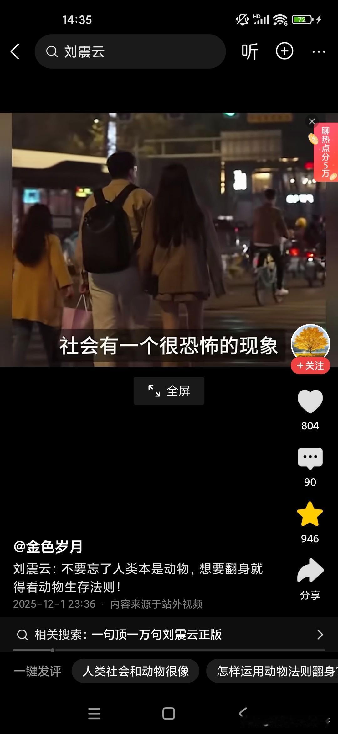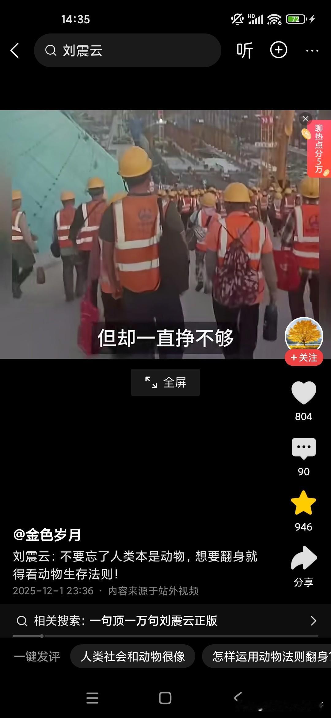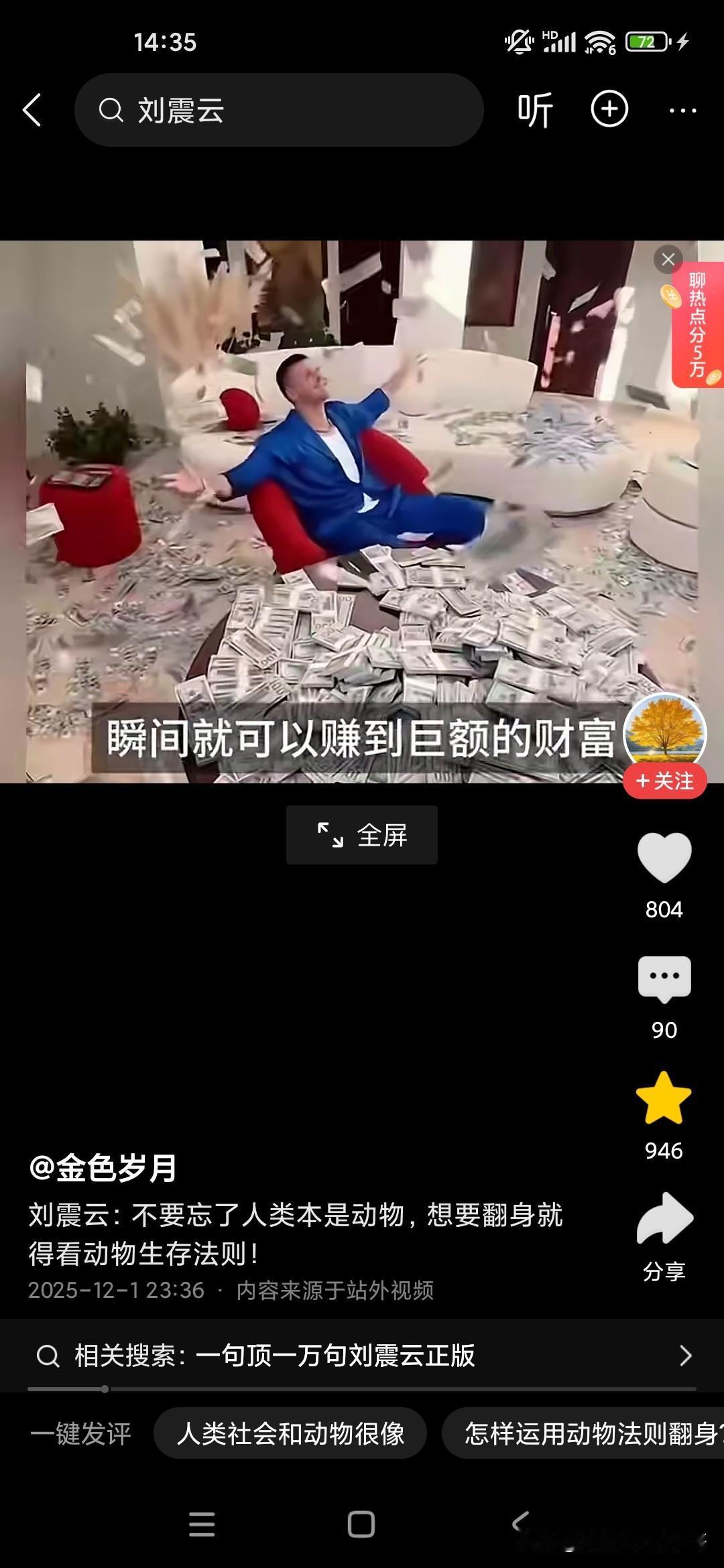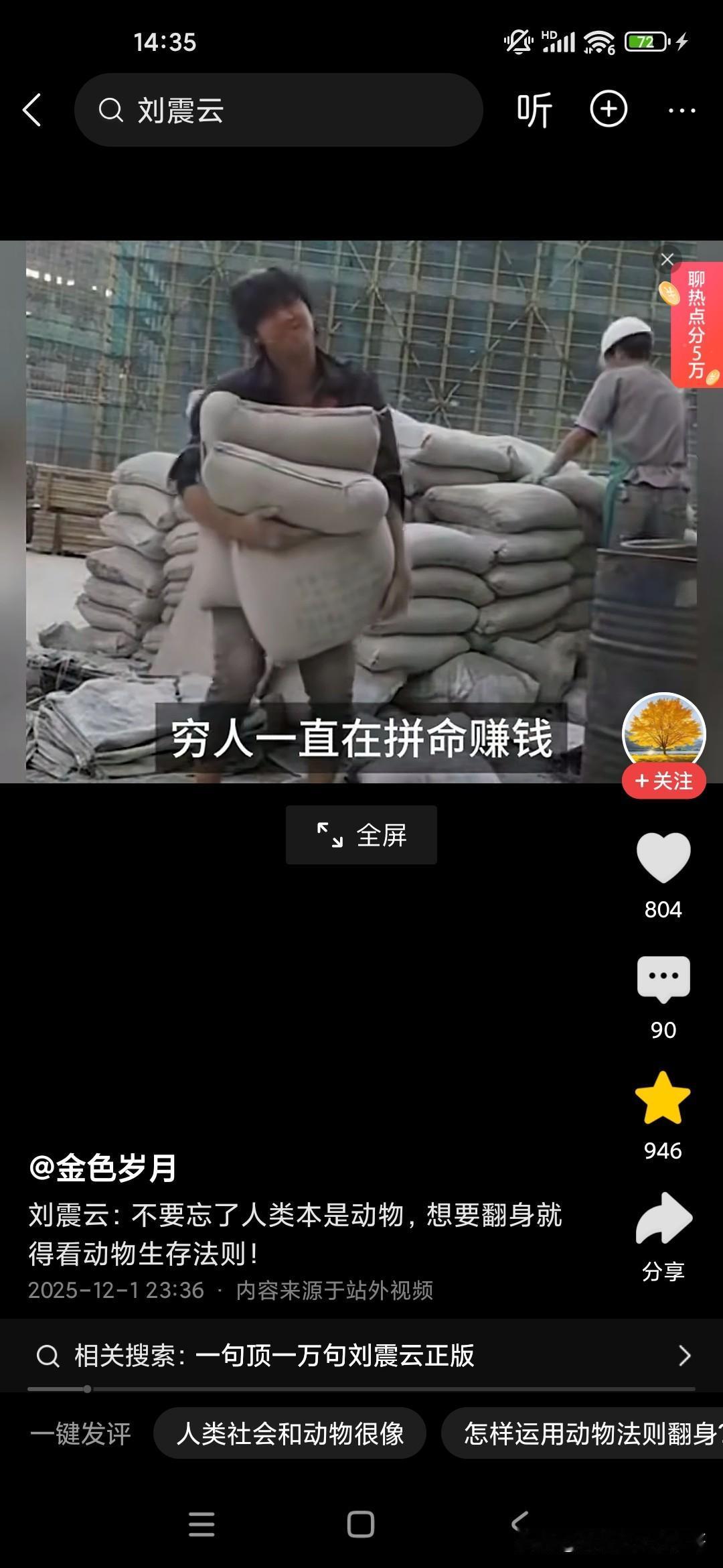 人本来就是动物,想要生存下来,必须要看懂动物世界! 刚听了刘震云老师的演讲,他觉得很多人就像食草动物一样,只能低头去吃草,而且一吃就要吃很久,而且丝毫没有安全性可言,他说富人的话,平时看起来都气定神闲的,但一旦一旦抓住机会,可能就赚了别人一辈子都无法企及的财富,这就是社会生存的法则,因为我们普通老百姓的话,很多人的话是干一天才有一天的活,可能就像斑马一样,吃了十几人十几斤草才能转换成一斤的能量,而富人的话,他有信息差和认知差,所以说他们只要轻轻利用杠杆原理,就可以撬动别人一辈子赚不到的财富,这就是我们穷人和富人的很大的差别,他建议我们人类本来就是动物,所以说我们要看动物的生存法则,这个社会是非常残酷的,你想生存下来就必须像动物一样去拼,站在食物链的顶端才可以!