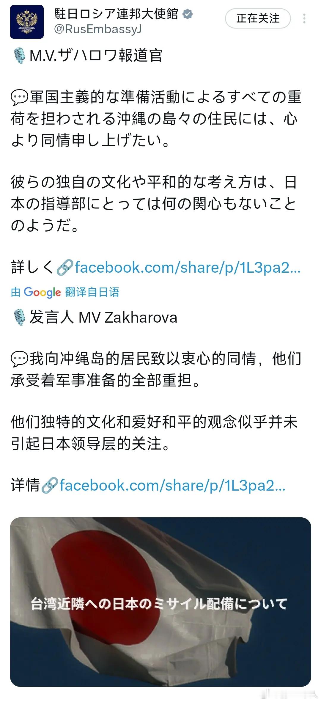 中俄联手搞琉球群岛,这是好事啊,俄罗斯驻日本大使馆11月30日晚发文写道:我向冲绳岛的居民致以衷心的同情,他们承受着军事准备的全部重担。他们独特的文化和爱好和平的观念似乎并未引起日本领导层的关注。旧金山和约,中俄都没有参与,是美日私下双方条约,没有国际效力。当日本跳的时候,中俄就有权按开罗宣言和波斯坦公告来要求日本了。琉球群岛现在地位为定论要好好炒起来。日本人现在不仅仅占领琉球群岛,以高市早苗为代表极右翼不仅仅对侵略中国不认账,还妄图染指台湾,是可忍孰不可忍!