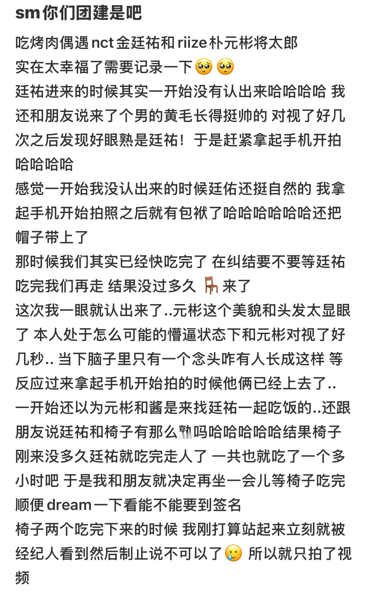 偶遇金廷祐朴元彬将太郎聚餐网友烤肉店偶遇金廷祐朴元彬将太郎我有点事儿,要去🇰