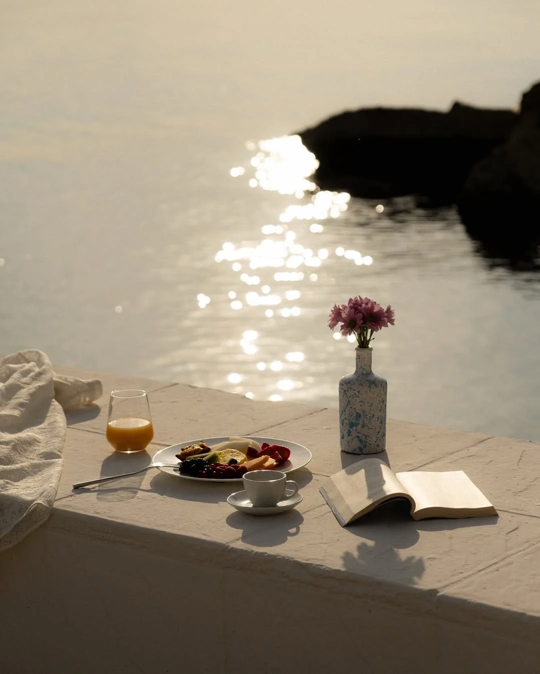 午后的海风是夏日的章节,海面起伏的光、微醺的酒杯仿佛带着颗粒感一般,定格在被风轻轻翻动的心绪里 🍸:lagiuditta