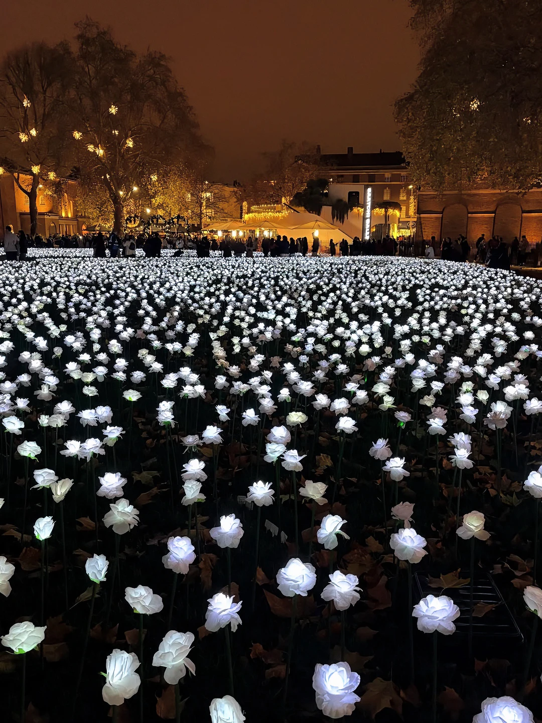 这个冬天,伦敦切尔西中心的约克公爵广场上,已点亮了超过30000朵发光的白色玫瑰花,而且周边的圣诞氛围也很浓厚了🎄