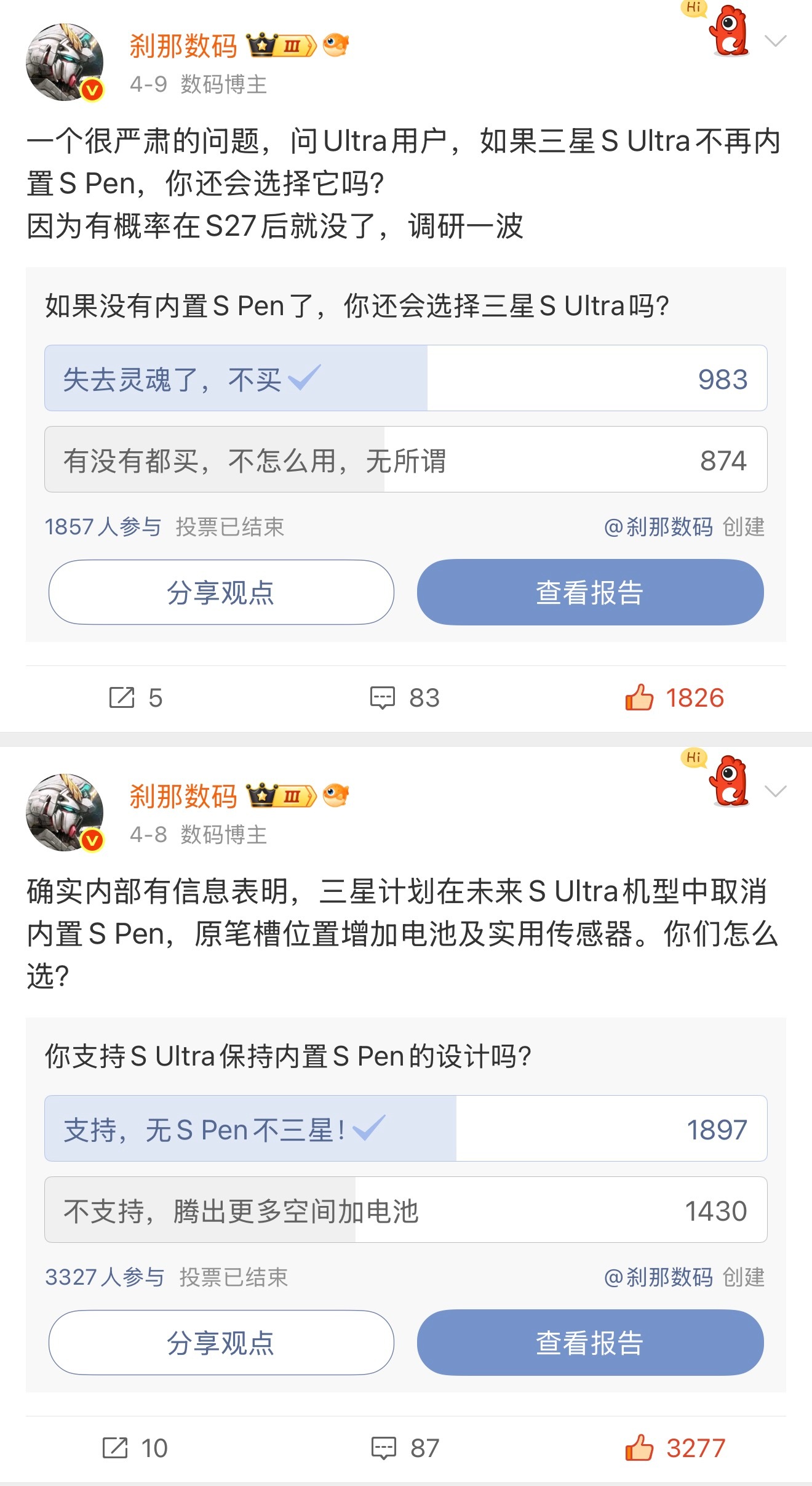 关于支持S Pen去留的调研,三星自己也做了,但没公开数据。我这里的投票基本55开,很难讲。