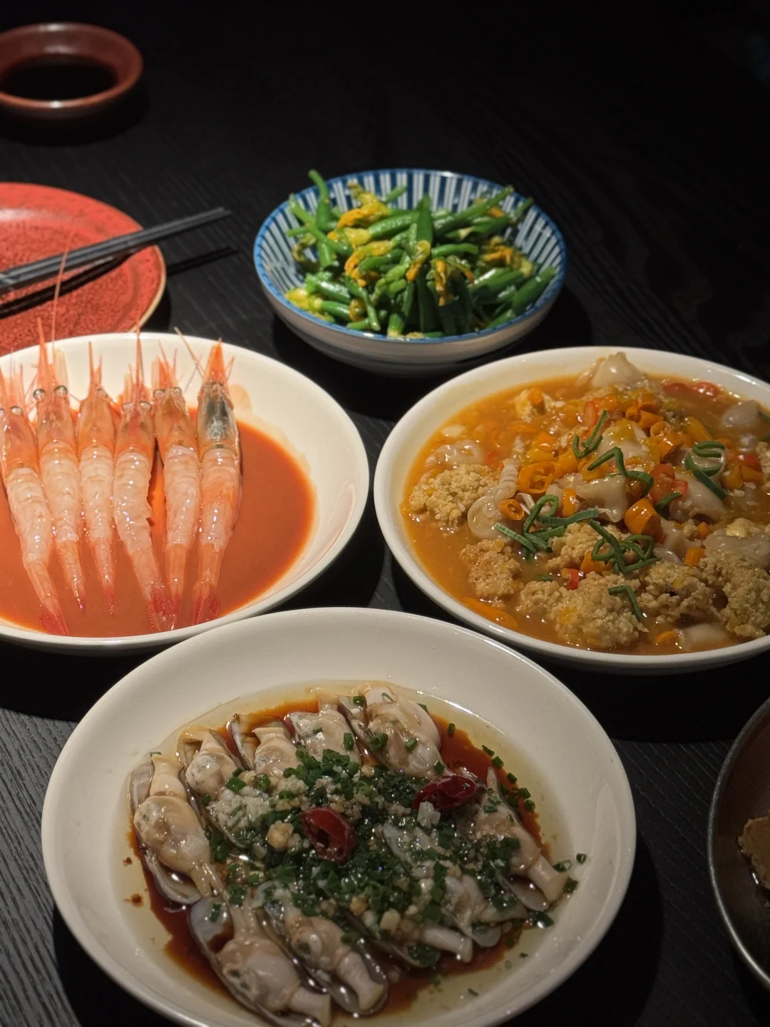 哇噻!深圳审美太超前了! 深圳👋家中式居酒屋….氛围感好美呀! 主打宁波菜+绍兴菜,真的有被惊艳到了 真的杠杠有氛围 很适合三五好友相聚 吃点小菜drink点小酒酒🤭 - 🐟小竹荚鱼无比新鲜!没有腥味! 🦐南乳口味熟腌虾 真的好好味啊 ! 🦑葱油肥蛏子 口感很独特很鲜! - 添福酒室🏮