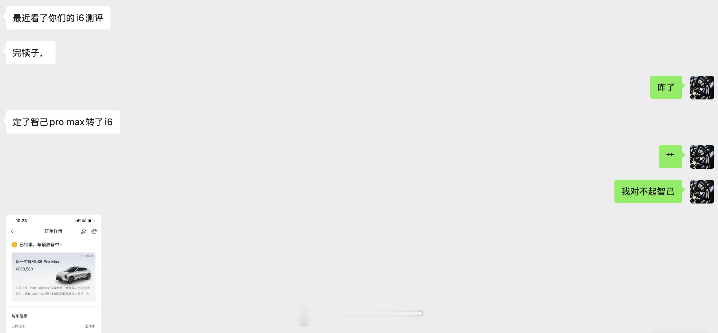 一个朋友看了我发的理想i6的视频退了锁单的智己LS6,转定了i6我对不起智己当然也有你们自己的原因,产能实在跟不上交付,不能全怪我