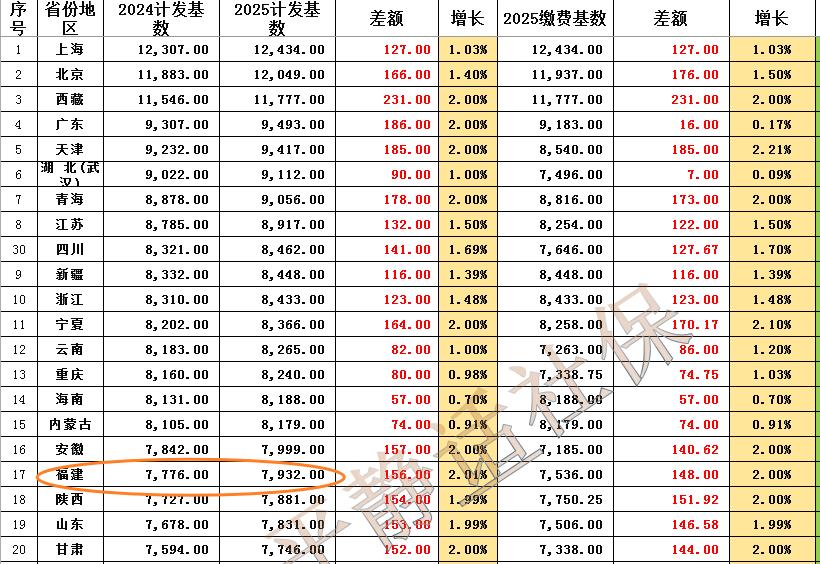福建养老金! 福建2025年计发基数7932元位列第17名,处在中间位置。 男,