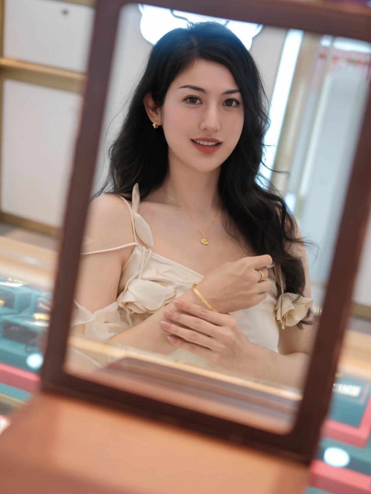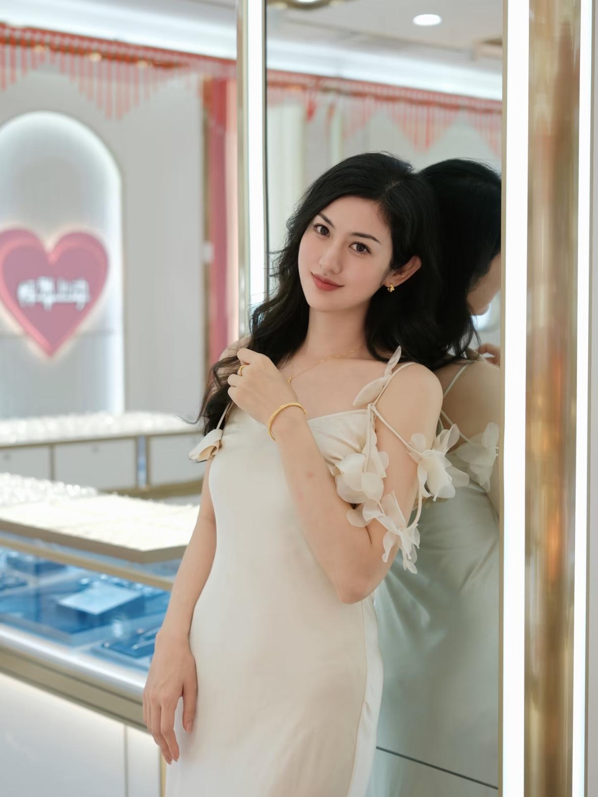 《临江仙·金饰映纱裙》 柔缎裁成云外色,裙肩叠作花轻。鬓边风软动春晴。镜中波潋滟,腕底玉分明。 金钏暗随香腕转,颈间星点流明。笑涡轻漾暖光生。一襟酥雪净,半盏月华凝。 象牙白的裙纱像揉碎的月光,肩带叠着薄如蝉翼的花影,垂在臂弯里软得像云。 腕间金镯随着抬臂的弧度轻晃,颈间细链坠着的光斑,和耳尖的碎金一起浸在暖光里。 她低头看时,镜中映出的不仅是缎裙的柔光,还有笑涡里漾开的温软,连空气都裹着一层细腻的甜。女人经济独立很强势好吗
