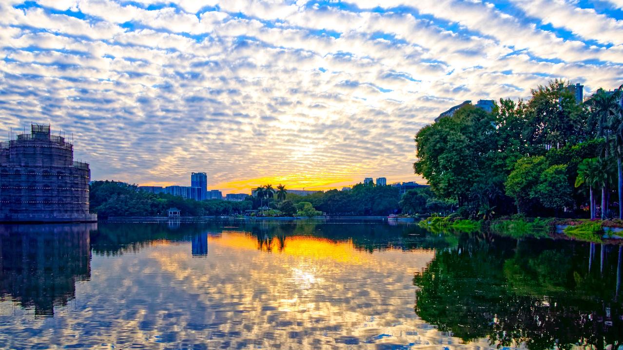 《水调歌头·湖城暮望》 云缕织晴碧,霞绮抹天东。一湖揉碎金缕,波影叠楼重。岸柳牵风低舞,新厦穿纱待起,夕照暖群峰。画境凭谁写,秋气入帘栊。 城光远,林色静,意无穷。半篙软浪,摇落云影与残红。既有繁华裁句,更带清宁入韵,今古此怀中。且向余晖里,闲数晚来风。