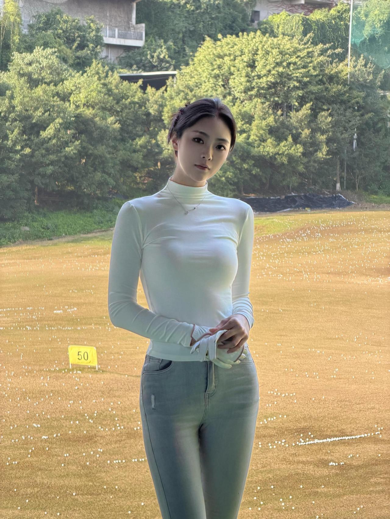 《沁园春·郊野挥杆》 晴野风轻,日暖梢头,草色半黄。看素衣裁玉,纤腰束素;柔荑笼雪,皓腕凝光。球落星飞,杆挥云敛,五十标边蝶影长。回眸处,恰鬓丝微乱,笑靥初藏。 闲时暂卸尘妆,趁新霁、郊原试锦囊。任眸光流转,春山含露;风姿摇曳,云鬓簪簧。袖惹晴熏,衣沾草气,醉里光阴懒计量。斜阳下,把清欢浅拾,归向横塘。