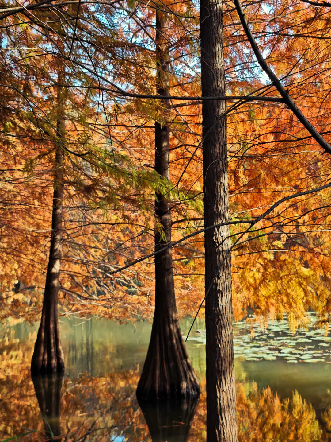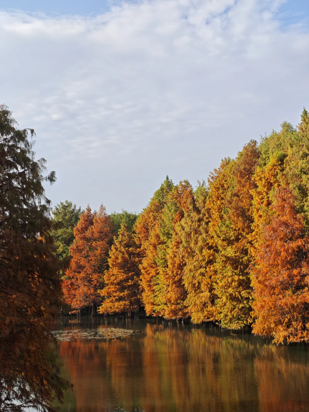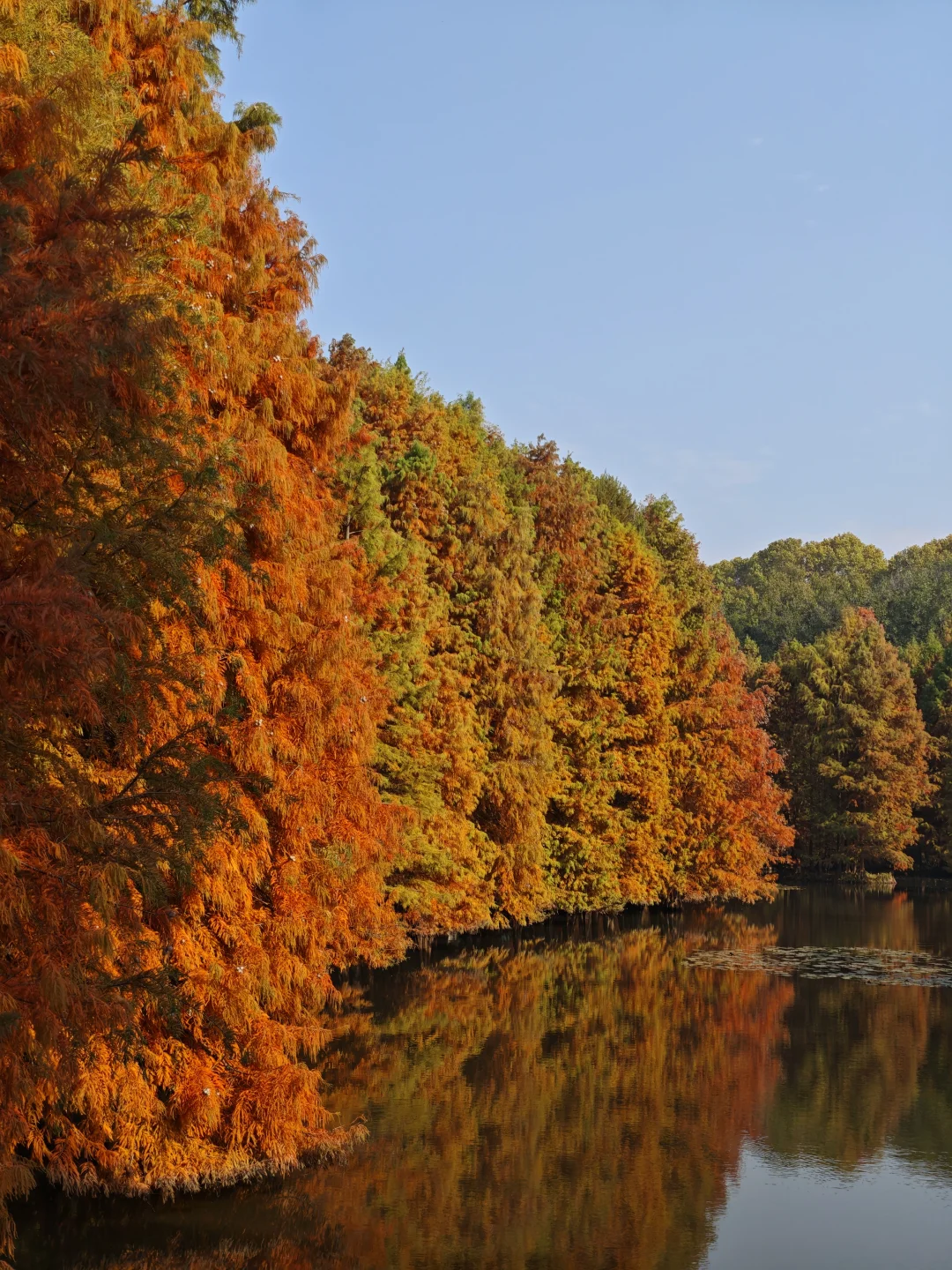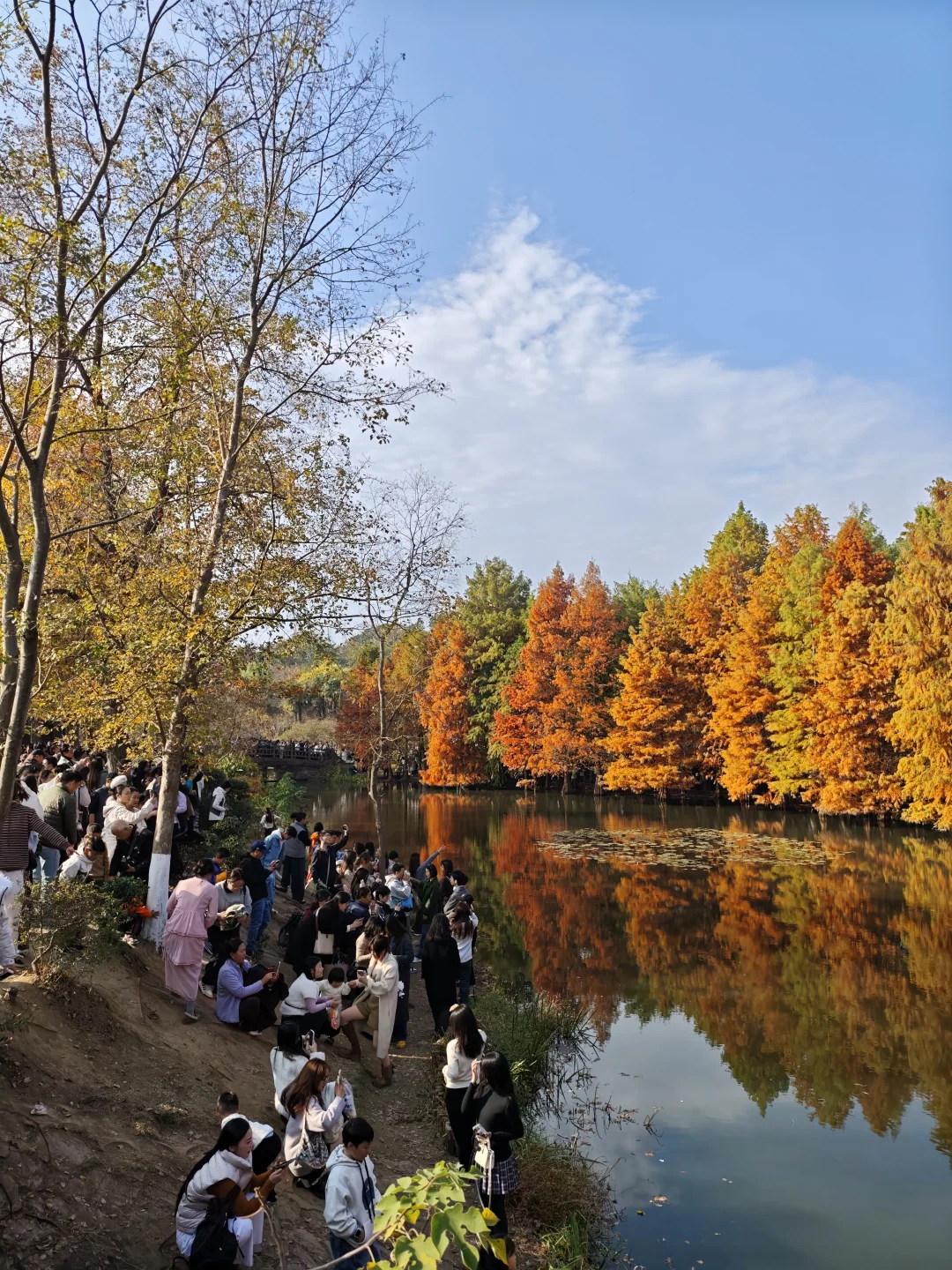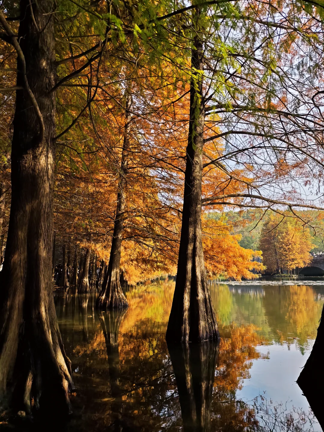 🍁明孝陵燕雀湖目前落羽杉已经开始大面积变色,现在是渐变色为主,红色、黄色、绿色全部都有,已经进入最佳观赏期~