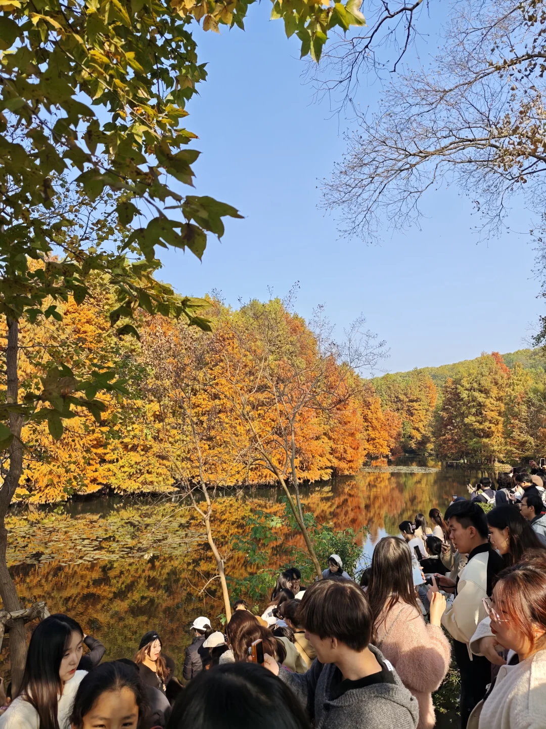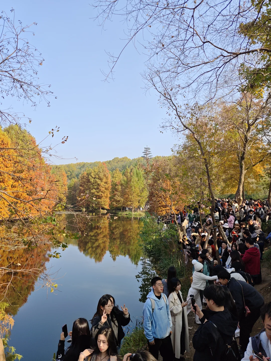 📖明孝陵燕雀湖沿线全部都是人,景区内燕雀湖旁,明孝陵3号门外和桥上,全部都是拍照出片的游客~