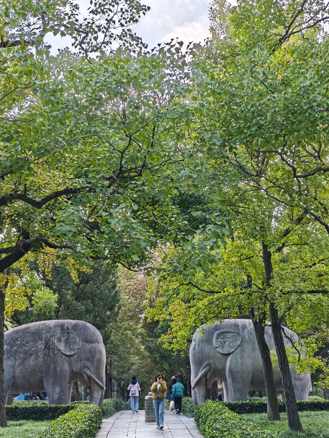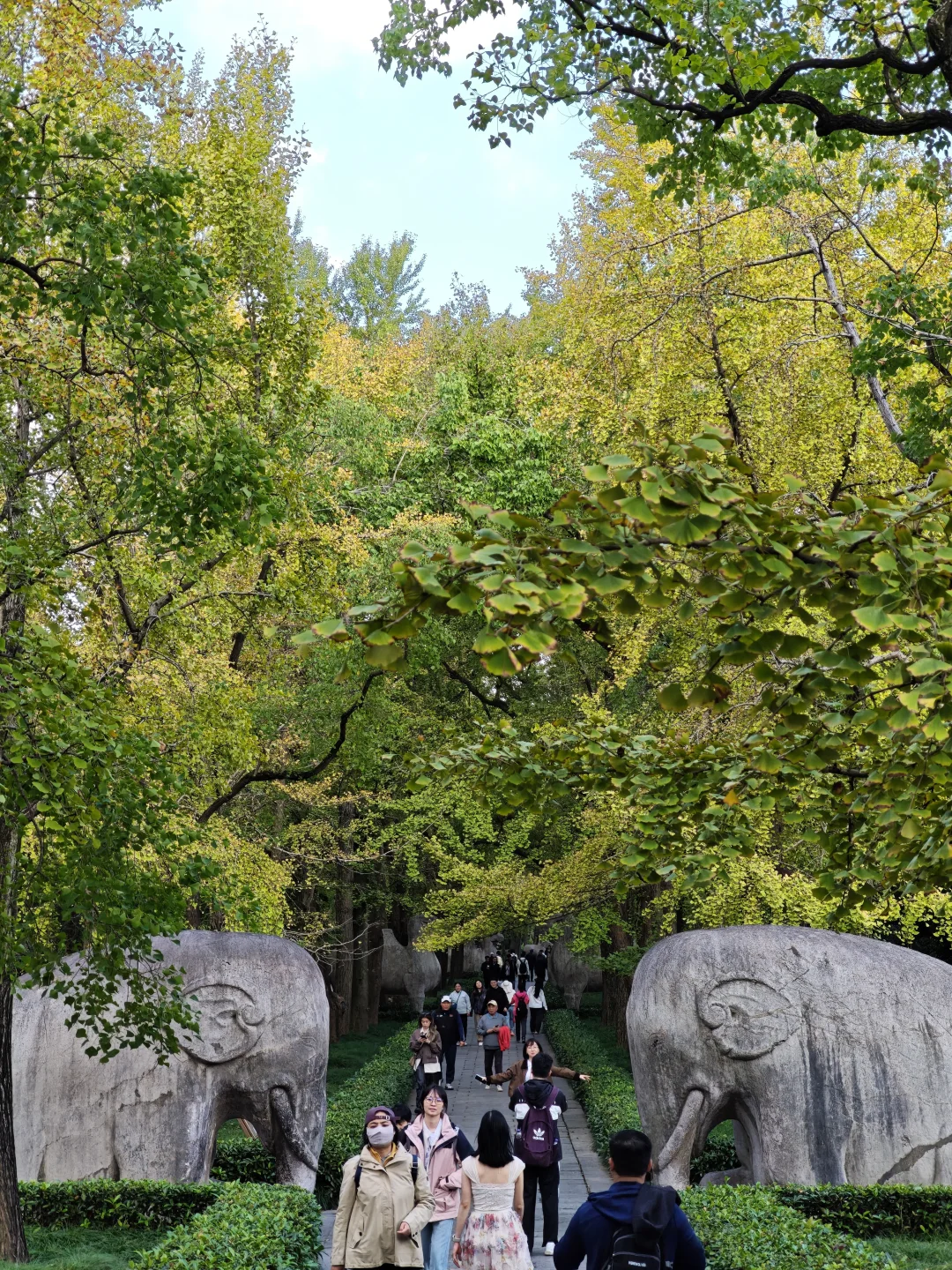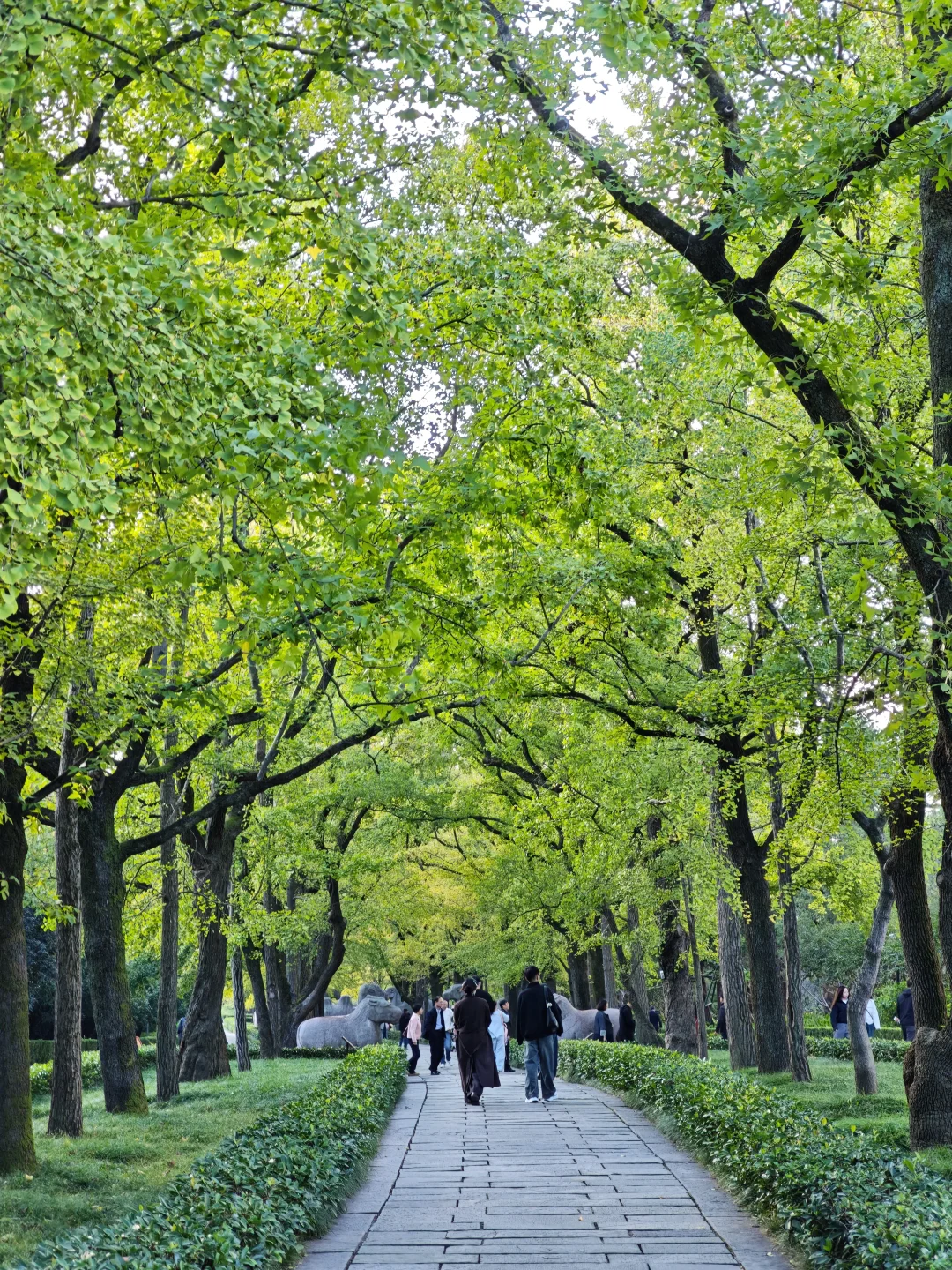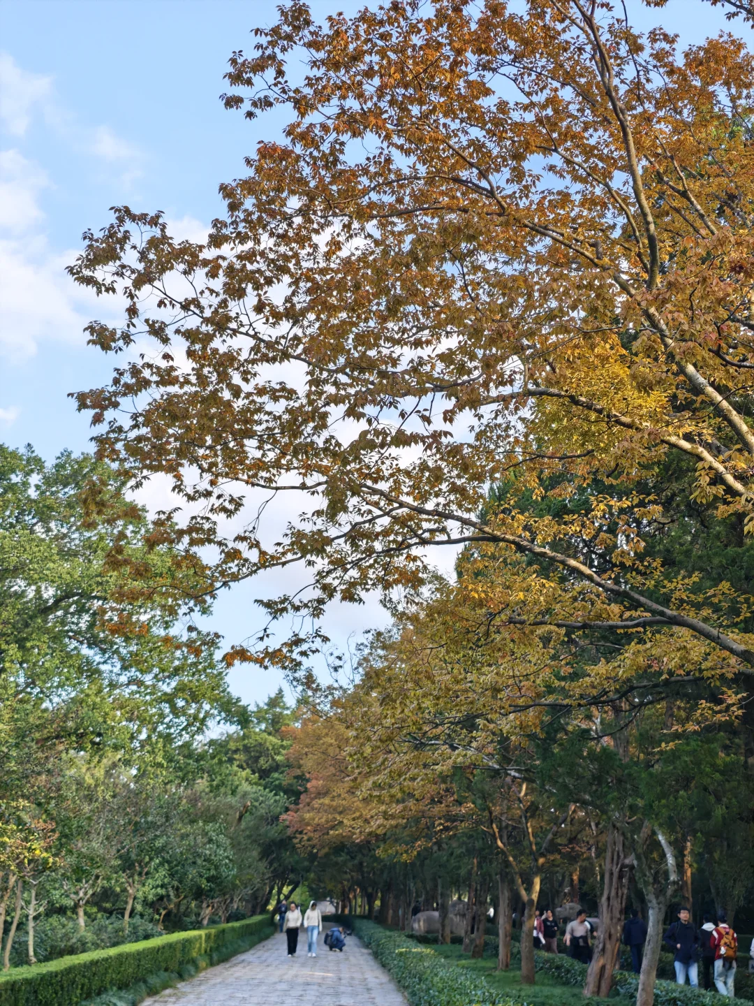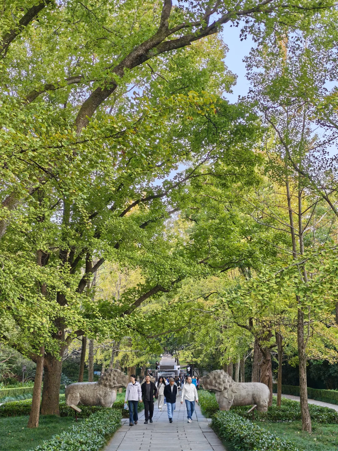 💥特别说明:石象路神道总长600多米,主要秋色是榉树、乌桕、圆柏、银杏、枫香,因植被变色时间和分布区域不同,所以变色进度会出现差异,比如乌桕落光了,银杏才迎来高光时刻;而同样的位置阳面和阴面拍照色彩也会不同,所以参观时不妨时常回个头,或者往返走一圈,看不一样的风景~