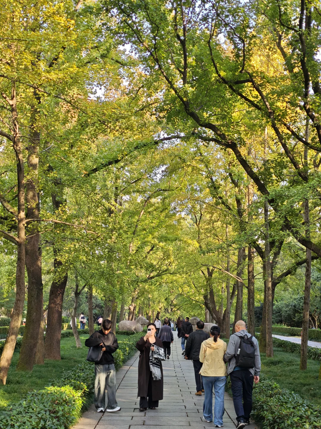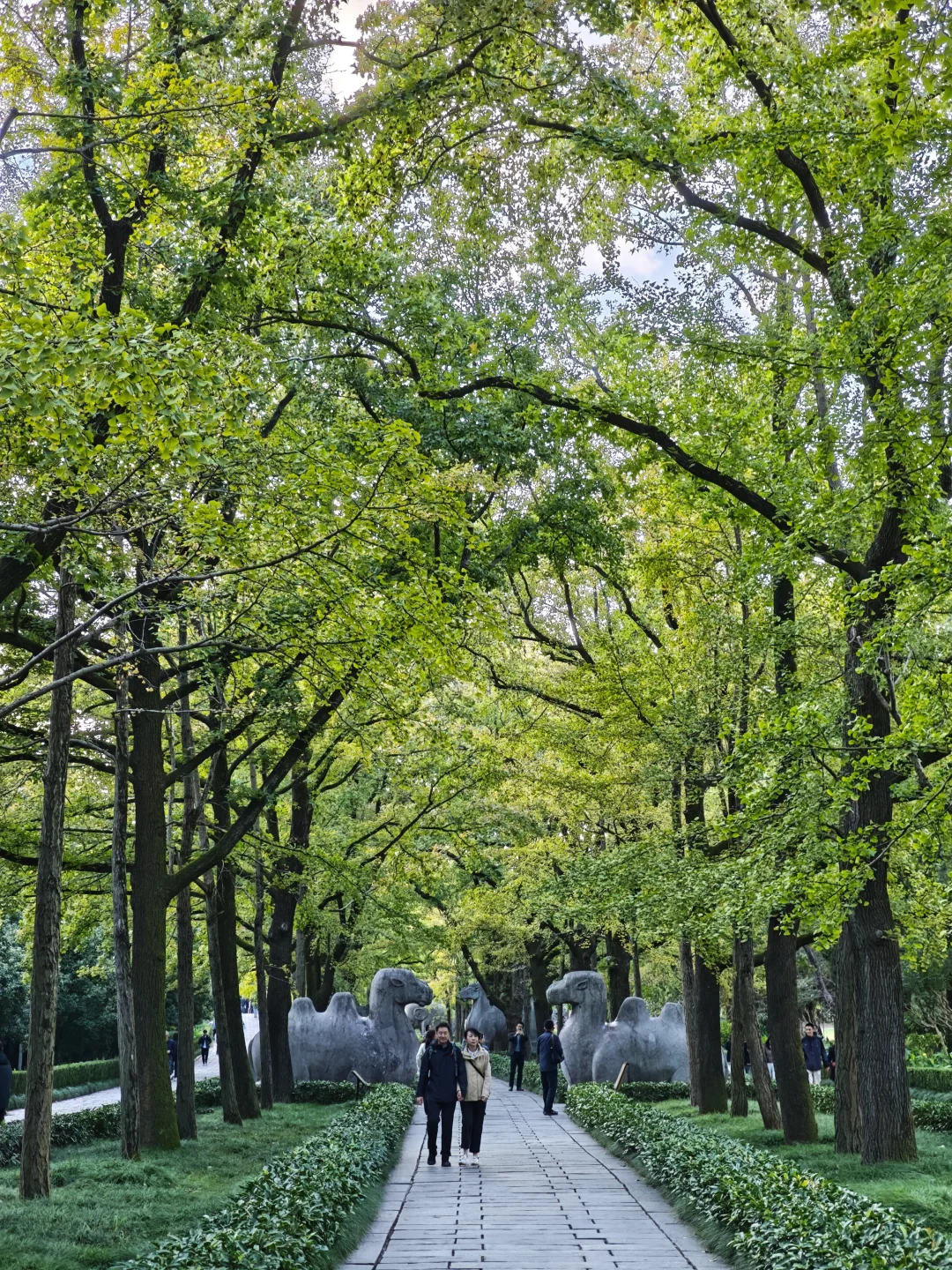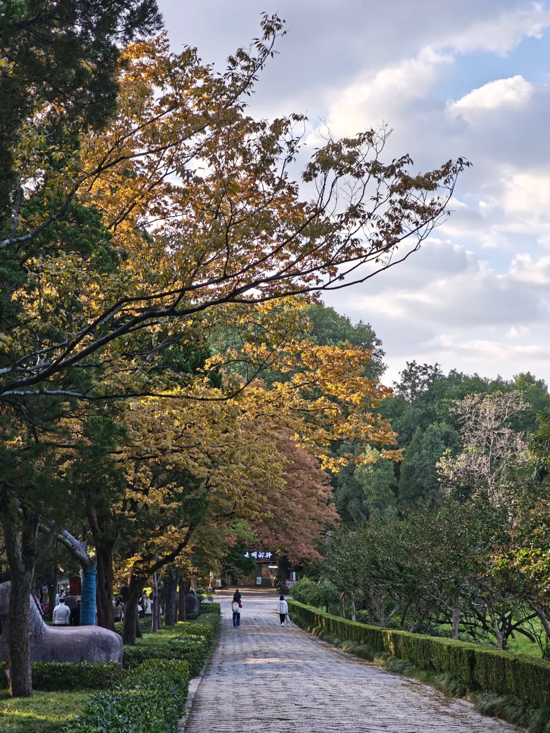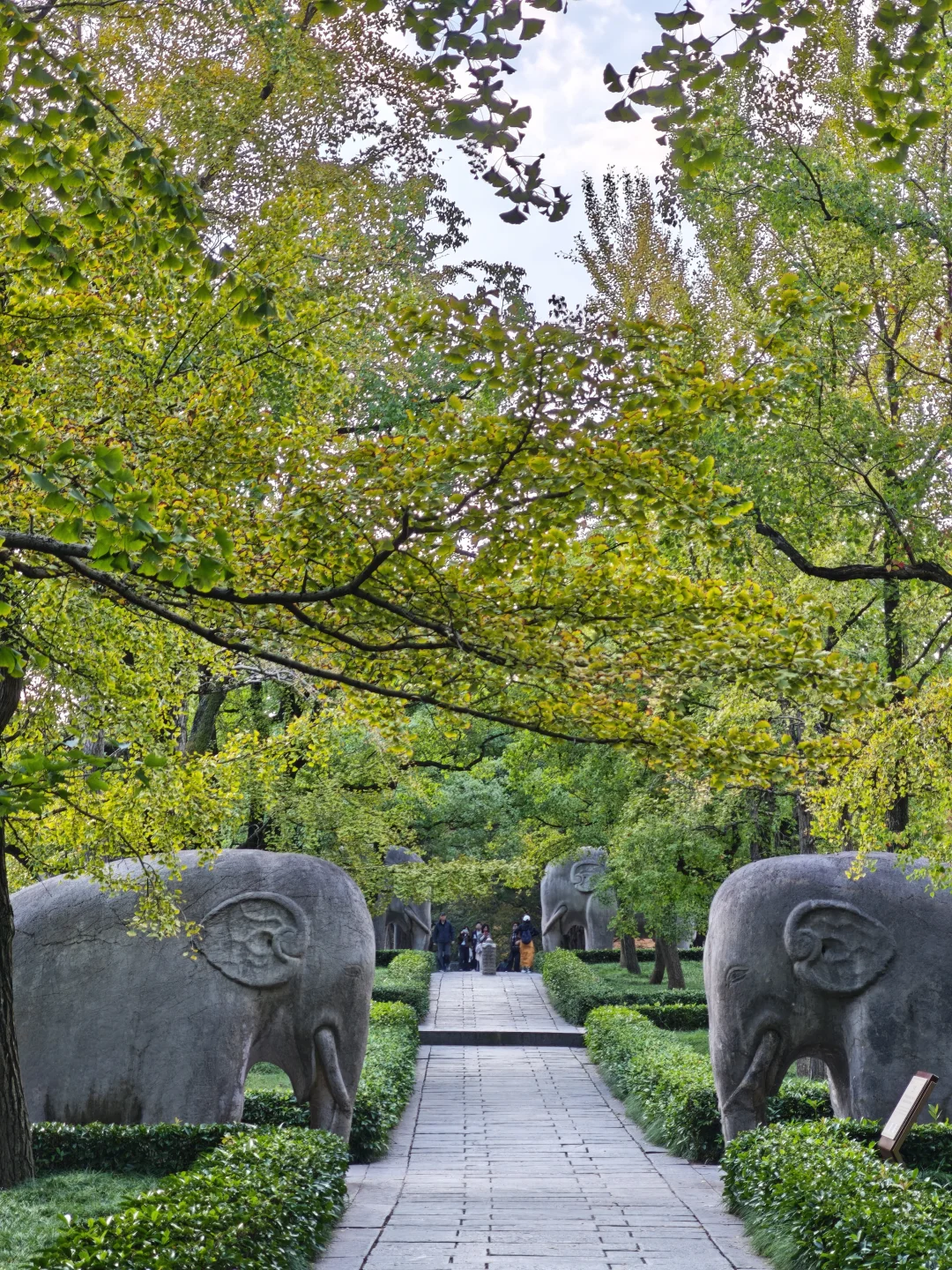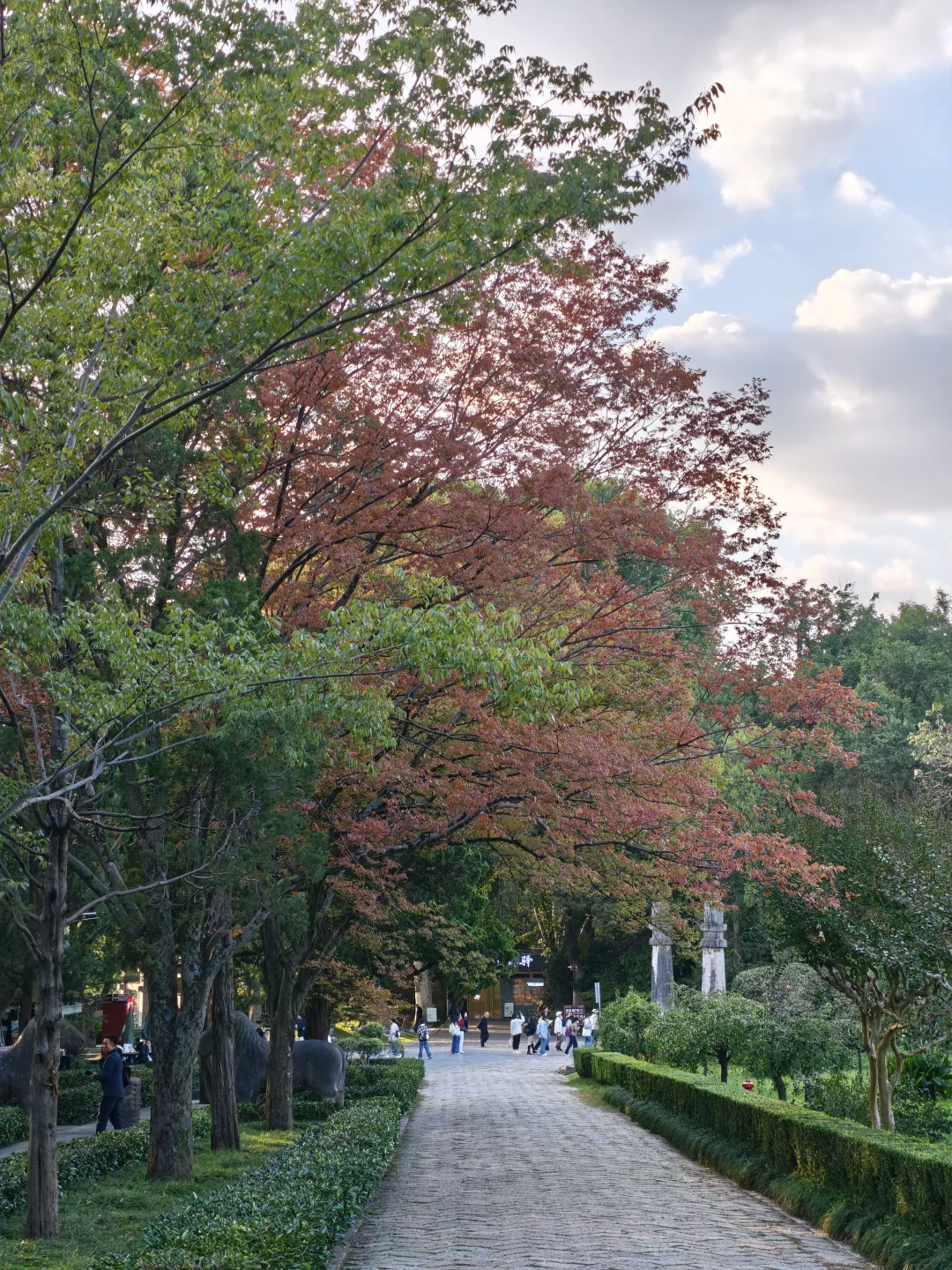 💥特别说明:石象路神道总长600多米,主要秋色是榉树、乌桕、圆柏、银杏、枫香,因植被变色时间和分布区域不同,所以变色进度会出现差异,比如乌桕落光了,银杏才迎来高光时刻;而同样的位置阳面和阴面拍照色彩也会不同,所以参观时不妨时常回个头,或者往返走一圈,看不一样的风景~