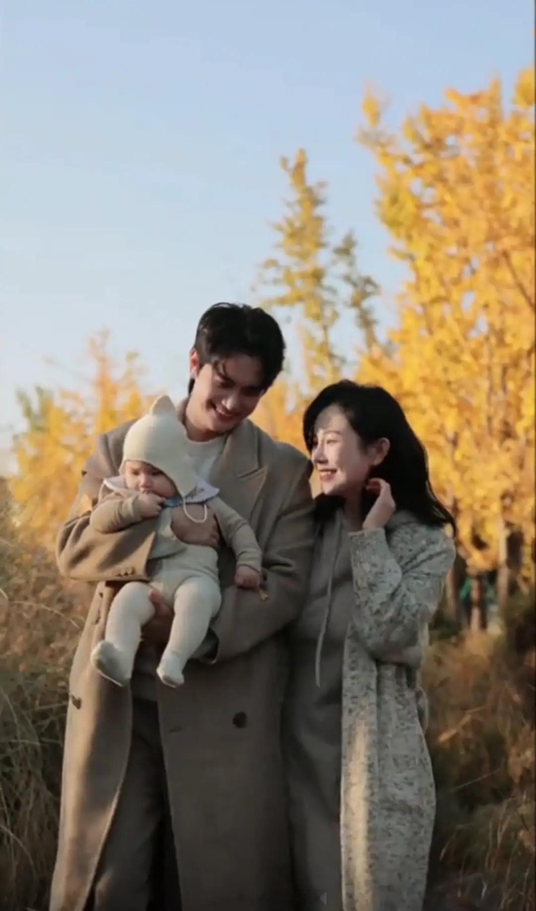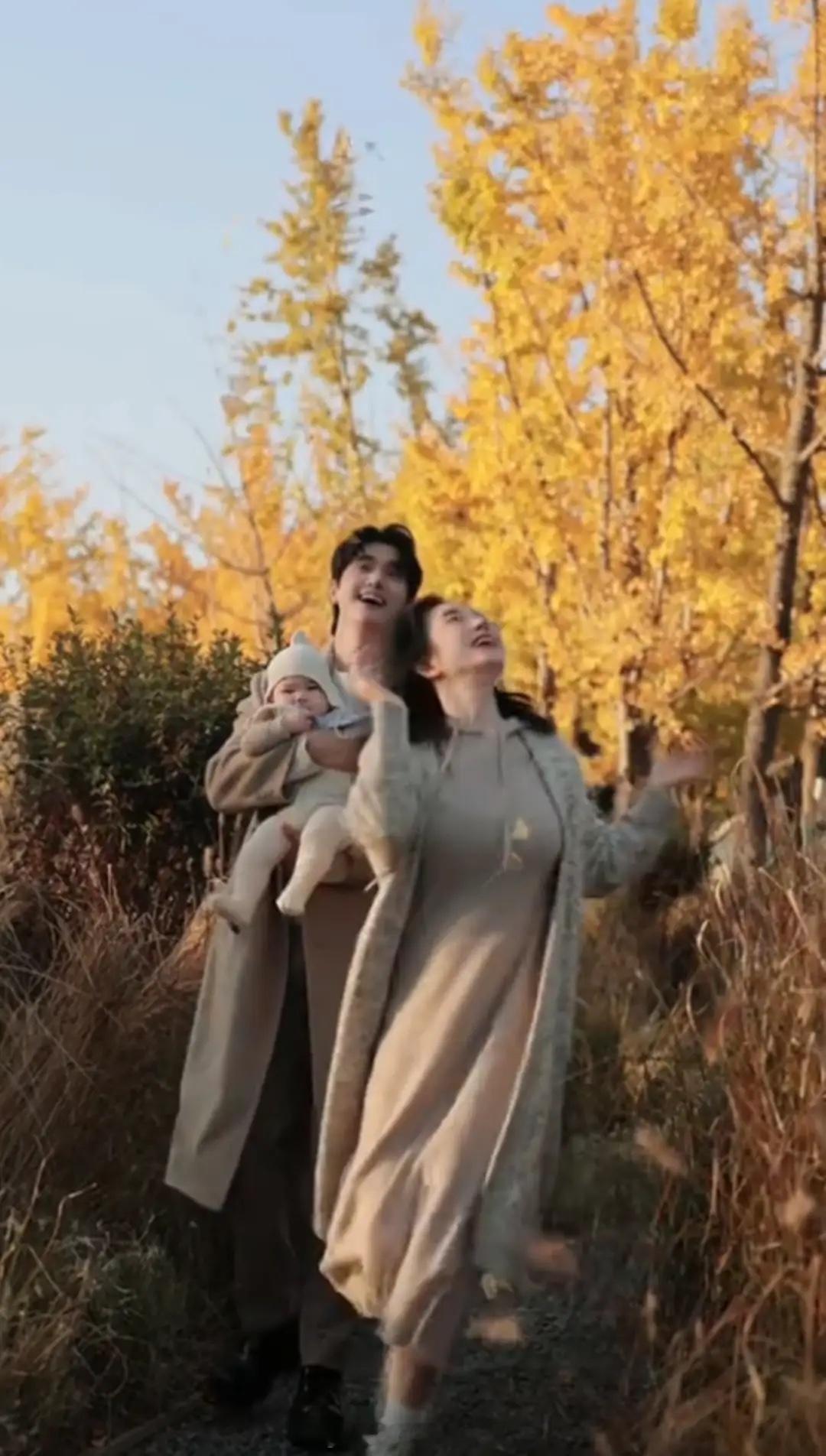 张檬和小五带儿子赏秋,产后快8个月还在喂母乳,气质长相变化大!