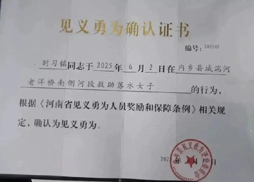 搭上性命救人,被救者不值一救。 6月2日凌晨,河南南阳16岁少年时习铭,与两名同学在内乡县滨河路边聊天时,突然听到河中有人呼救,这是一对夫妻因为吵架女子自寻短见,男方发出的呼救声。三名学生仅时习铭会水,他立即跳入河中,此女子是得救了,而这对夫妻得救后就走开了,救人的高一学生时习铭却上不来河岸,丢了性命。学校,政府申请,时习铭被认定“见义勇为”,家属收到证书和奖金。可当多个部门联系获救女子,直到时习铭安葬都未前来,没有道歉,没有悔过,更无其他表示。可怜时习铭母亲痛不欲生、长期卧床,家中餐饮店关门,时习铭父亲只好送外卖度日,家中还有两个小孩,这家就这样被击垮了。有人说宁肯与笨人交往也不要与愚昧者打交道,愚昧者的世界没有是非,没有对错,只有恶没有善,只有极端自私,冷酷无情。所以这个被救的女人真的不值得相救。