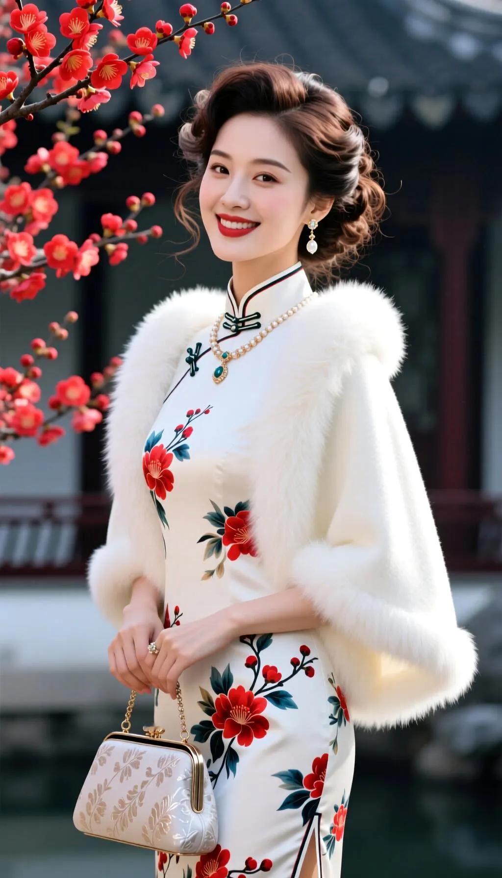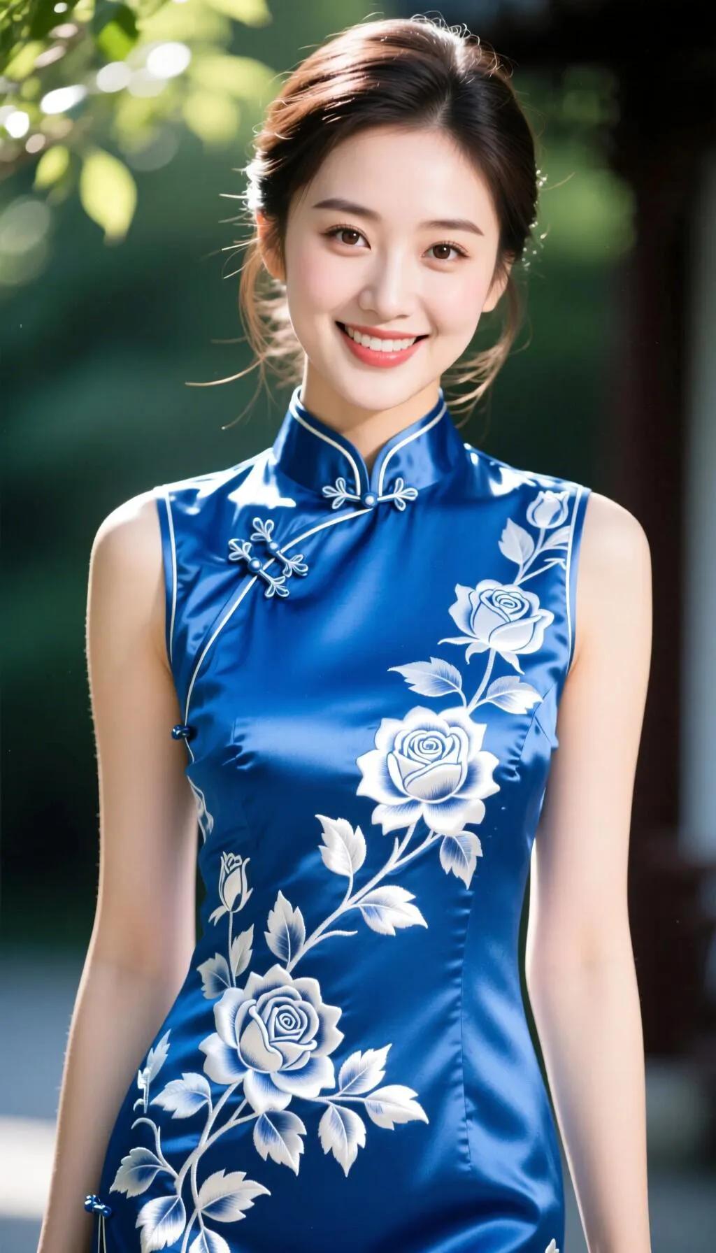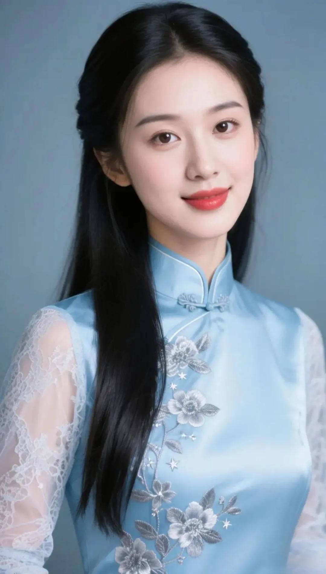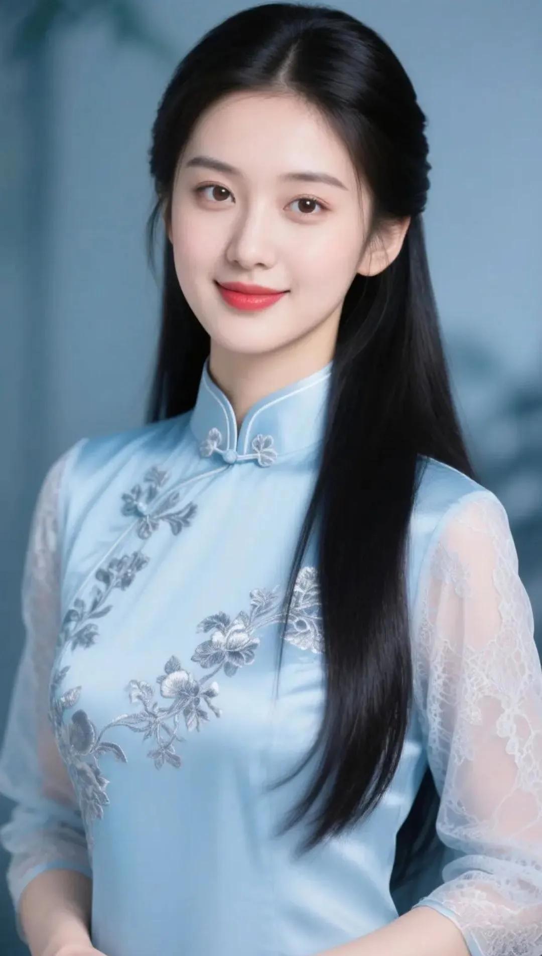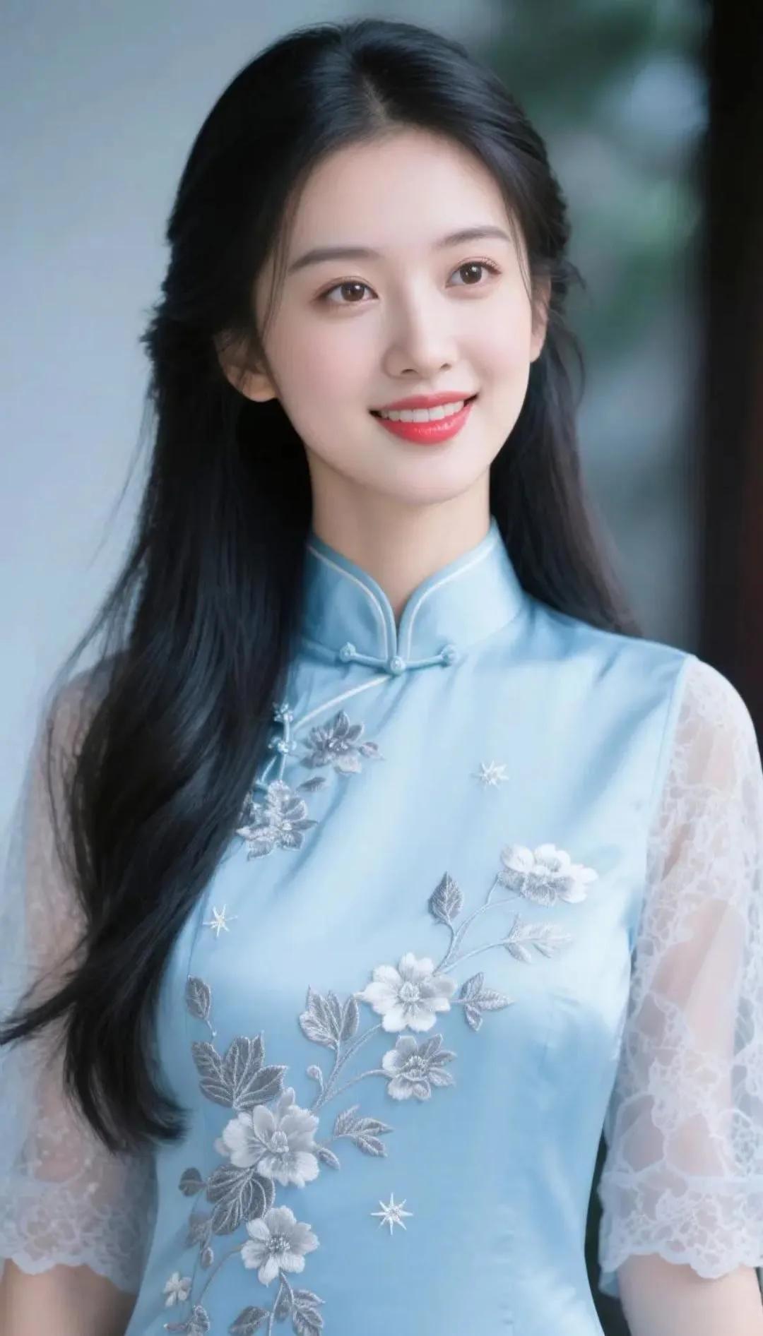 温柔蓝调,优雅旗袍,绽放迷人微笑