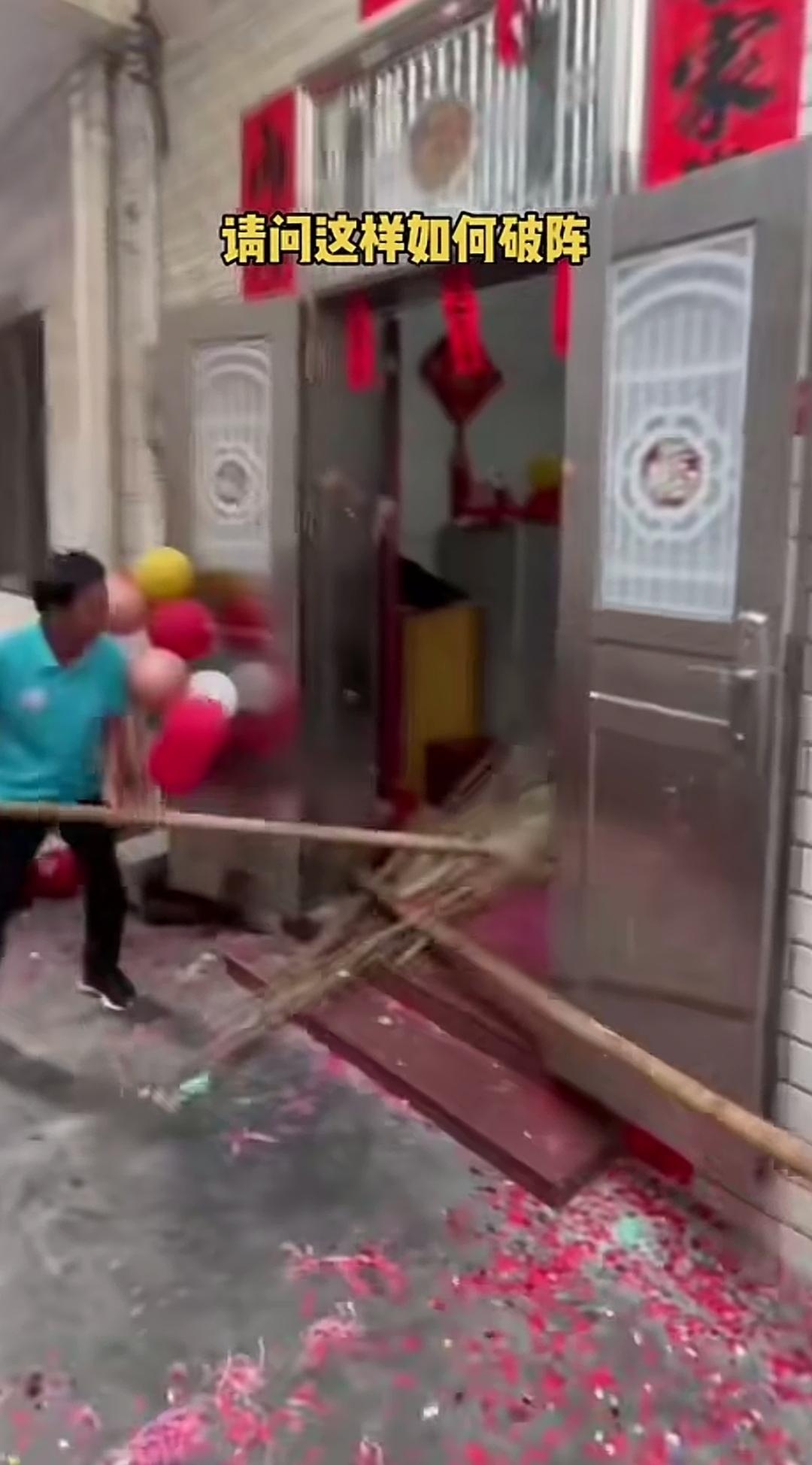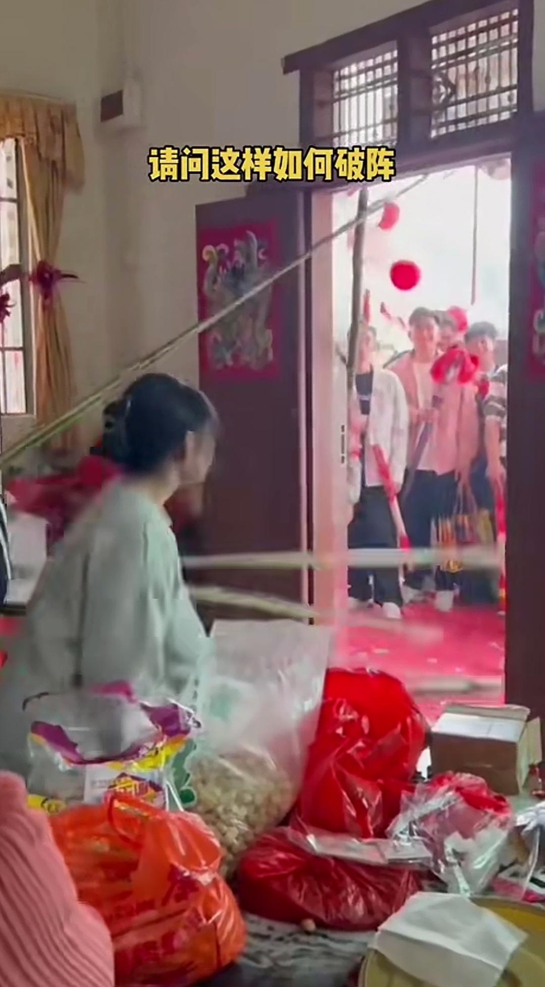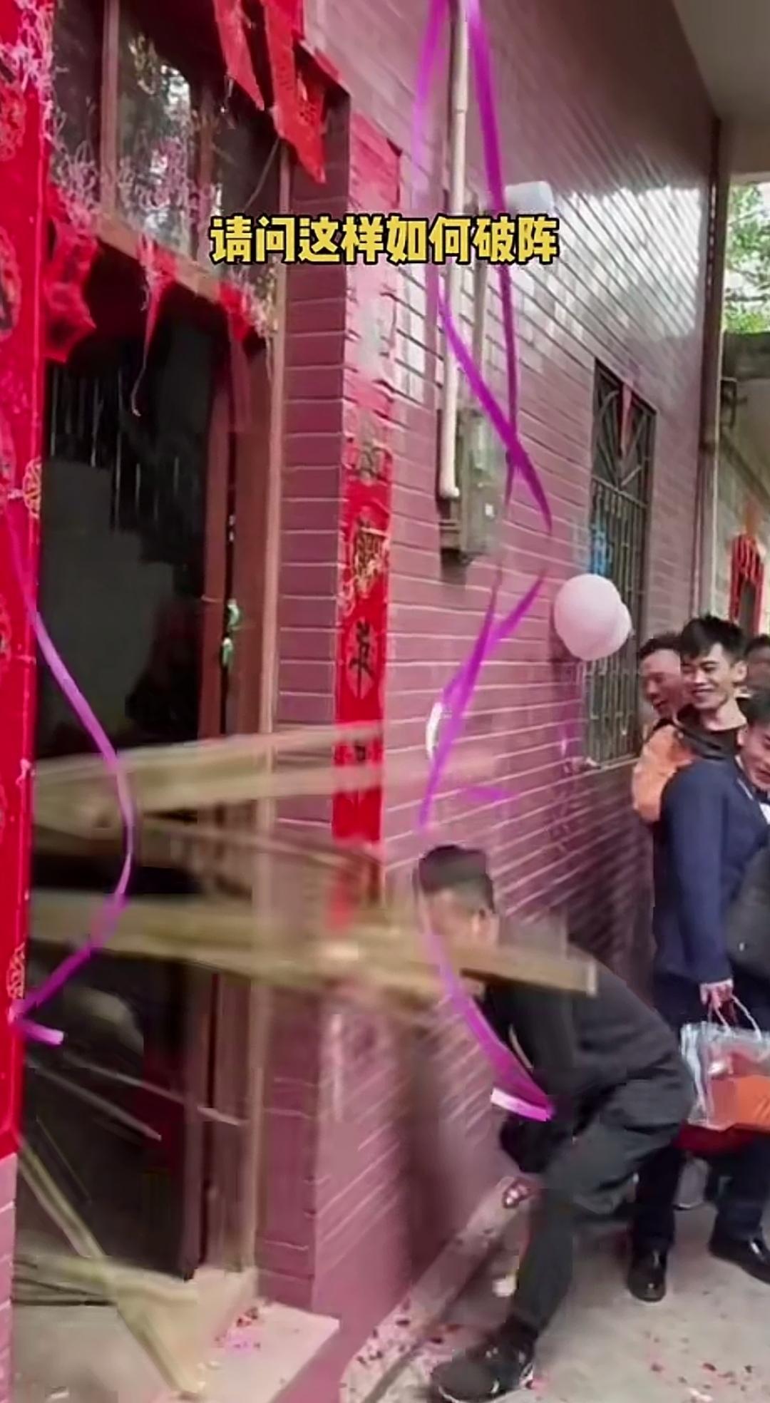 “新郎来迎娶新娘,进门前女方设挥竹阵让男方破解,破不了就不准接走新娘”,这是哪里的风俗呀?闹喜氛围如此浓烈! 现场,随同新郎来迎亲的伴郎们,还没进门,就被新娘闺蜜们摆出的竹条阵挡住了。这般阵仗,男方想轻松进门根本没戏。不过,新郎和伴郎们怎会轻易灰心,这可是最后一道闹喜关卡,再难也要闯进去。于是便有了画面中的这一幕,男方直接用竹竿去压从屋内伸出来的竹条。别说,这招还挺管用,女方摆出的竹条阵瞬间被压制,新娘也被新郎顺利带出。 接新娘时,女方以摆阵的方式闹喜,场面着实精彩。但欢喜背后,就怕有人故意生事,把喜庆变成伤痛! 最后问问大家,在迎亲现场,你们喜欢女方营造的这种氛围吗? 冬日生活打卡季