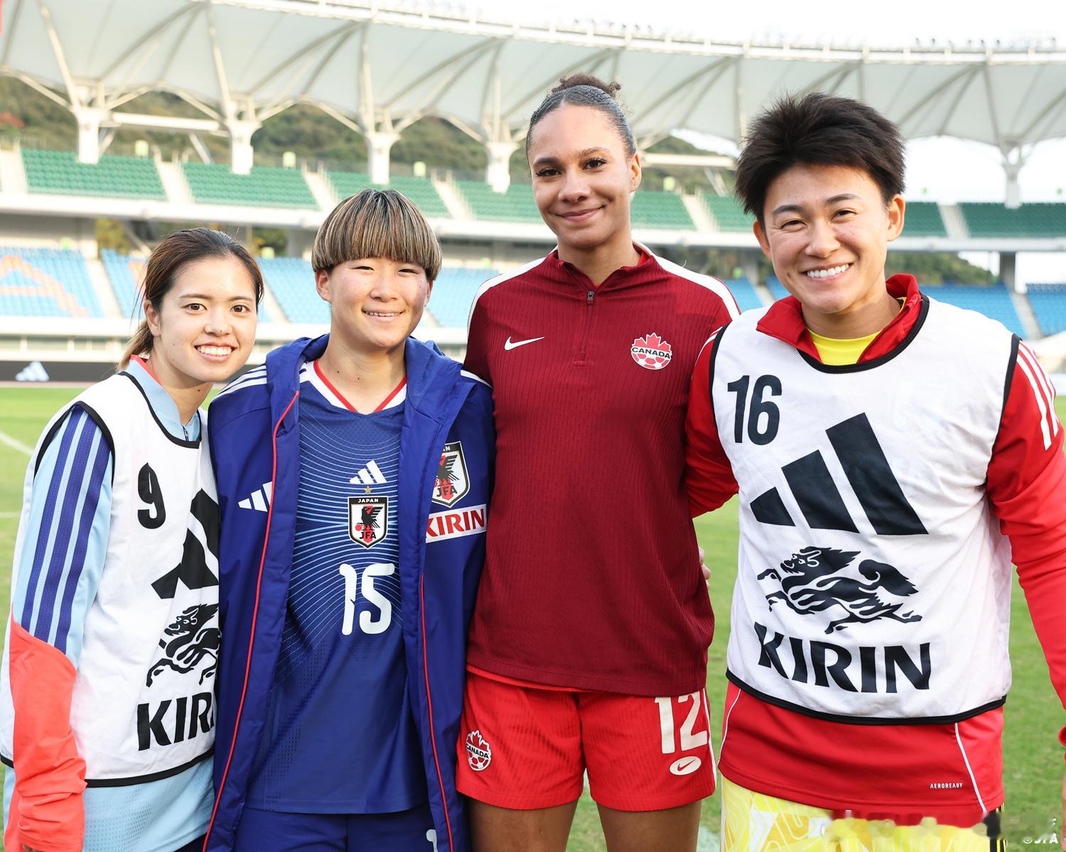 俱乐部队友合影留念松窪/Sydney Collins(前北卡勇气)南(前罗马队)/Evelyne Viens/熊谷(前罗马队)長谷川/藤野/Jade Rose/山下(曼城)