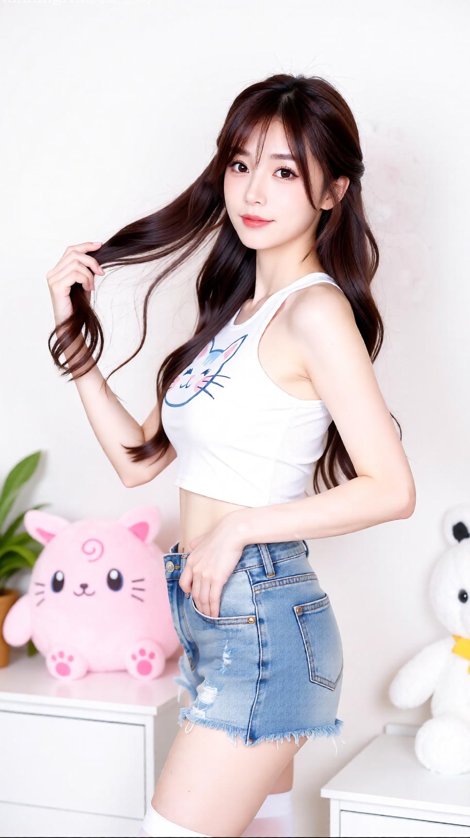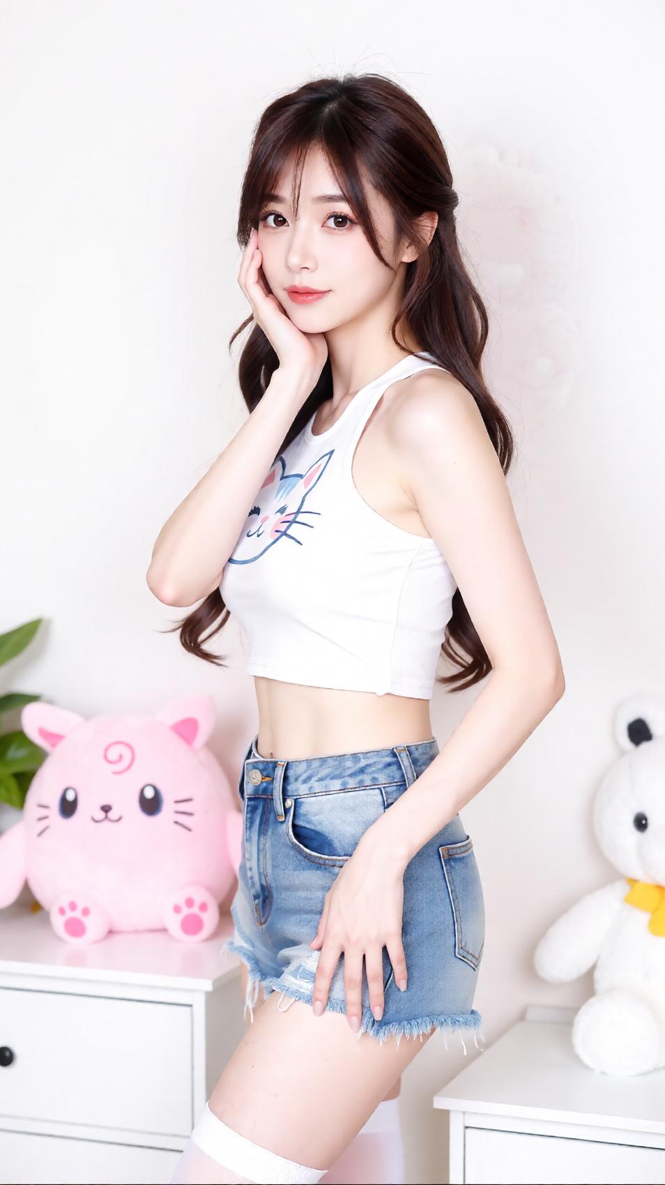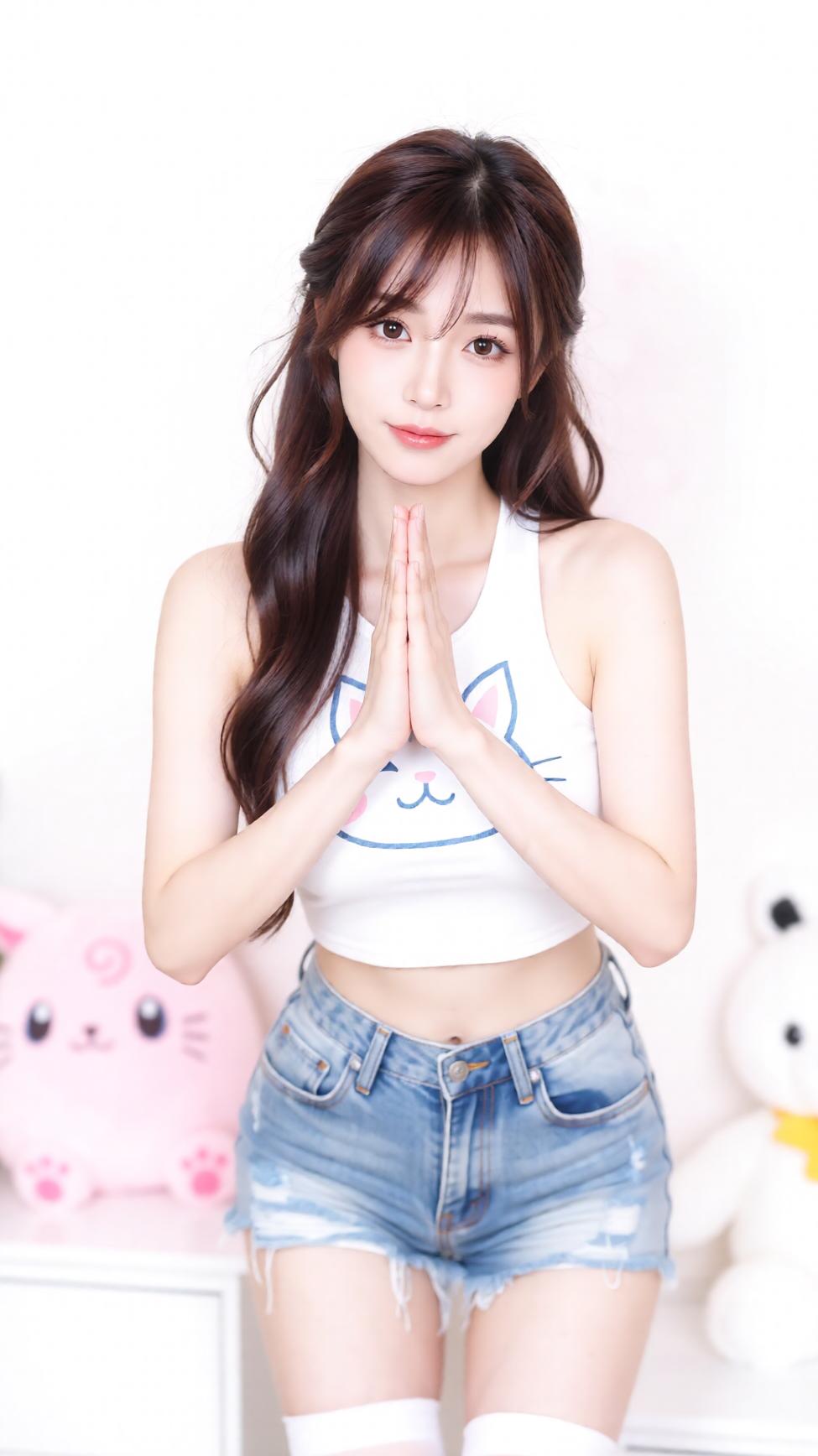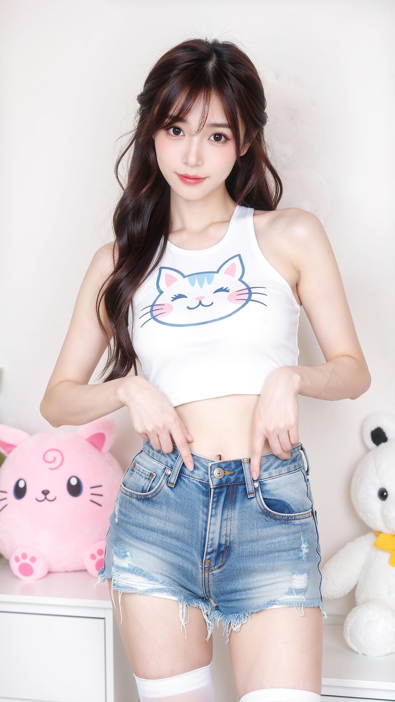 夏日甜美穿搭,猫头背心配牛仔短裤,萌趣十足!
