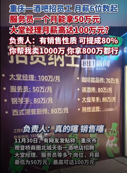 重庆酒吧百万月薪招人?醒醒,别被“提成神话”闪了腰! 今晚刷到这条消息,我差点