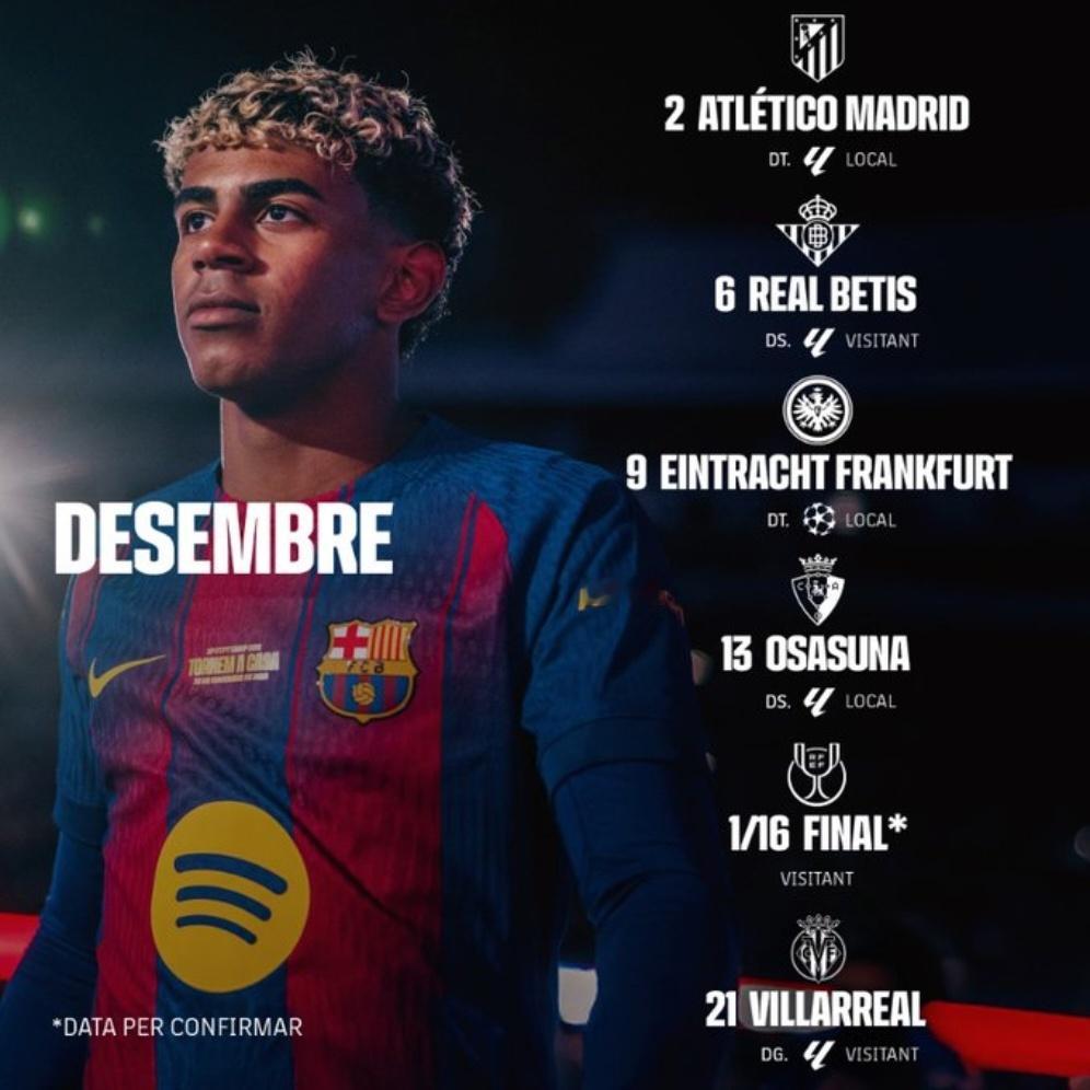 巴萨12月份赛程,今晚战马竞,然后贝蒂斯,法兰克福,奥萨苏纳,国王杯和比利亚雷亚