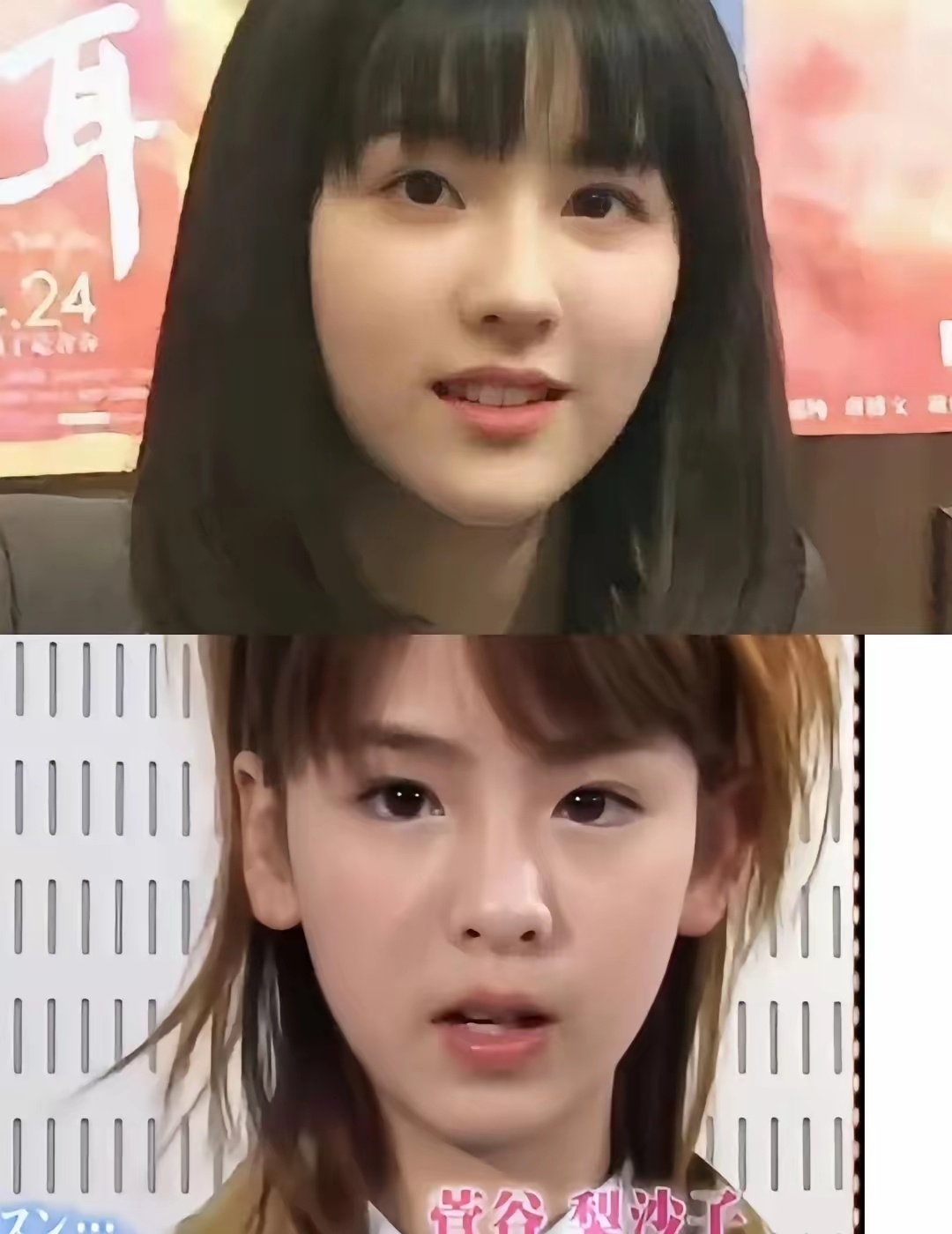 我的天,除了眼睛这俩真的不是一个人吗??陈都灵和菅谷梨沙子真的好像双胞胎啊,有种小兔子萌萌的感觉,但是眼睛双眼皮还是有点不同,是不是美女的脸型漂亮比眼睛漂亮更重要啊